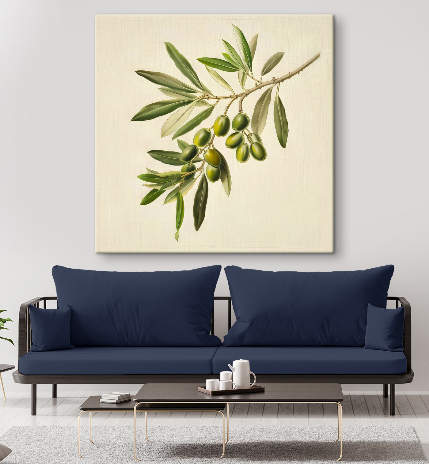 Aduceți o felie de natură în casă cu această minunată imprimare pe pânză a unei ramuri de măslin, completată cu măsline verzi și luxuriante. Este ca și cum ai avea un colțișor calm din Mediterana chiar în casa ta. Verdele intens și curbele blânde ale frunzelor vă invită să visați cu ochii deschiși la degustări de ulei de măsline proaspăt și brize calde. Imaginați-vă această frumusețe deasupra mesei de luat masa sau într-un colț de lectură confortabil. Perfectă pentru a adăuga un strop de viață oricărui spațiu, este un starter de conversație fără ca măcar să încerce. Pereții dvs. vă vor mulțumi – și la fel și oaspeții dvs.!
