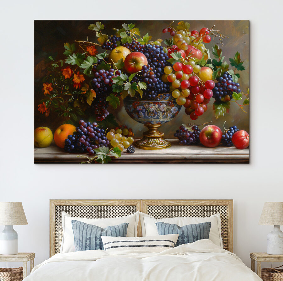 Imaginați-vă un castron vibrant, debordând de fructe delicioase, care abia așteaptă să înveselească orice cameră. Acest print pe pânză nu este doar atrăgător; este ca o invitație veselă de a vă bucura de micile plăceri ale vieții. Culorile dansează împreună ca un smoothie perfect amestecat, evocând bucătăriile confortabile și după-amiezele însorite. Imaginați-vă-o în sufragerie, stârnind conversații delicioase sau poate inspirând acea salată de fructe pe care ați tot amânat-o. Este o atingere de artă care face ca spațiile să se simtă calde și primitoare, perfectă pentru oricine iubește un strop de viață bună.