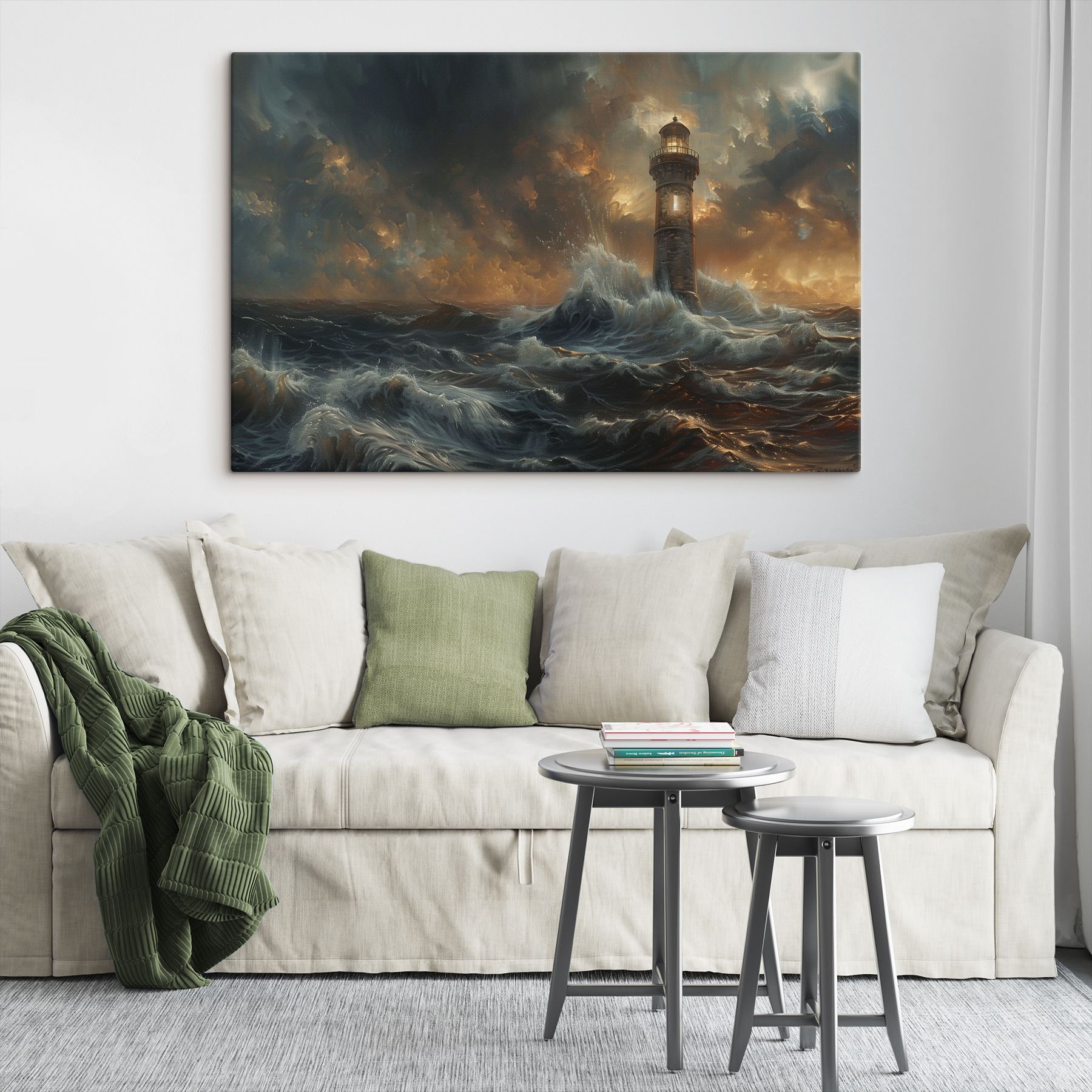Ai nevoie de o notă de dramatism în camera ta? Acest print pe pânză, intitulat “Lighthouse towers over stormy waves”, ar putea fi soluția! Imaginați-vă acest lucru – un far care se ridică puternic împotriva valurilor furioase și a norilor amenințători. Nu este doar o operă de artă; este o poveste despre reziliență și speranță. Perfectă pentru momentele în care ai nevoie de un impuls. Puneți-o în sufragerie și fiecare privire va fi ca o adiere adâncă și proaspătă de aer oceanic. În plus, este un subiect de conversație pe cinste. Credeți-ne, veți visa cu ochii deschiși la mările furtunoase și la sufletele curajoase care le înfruntă.