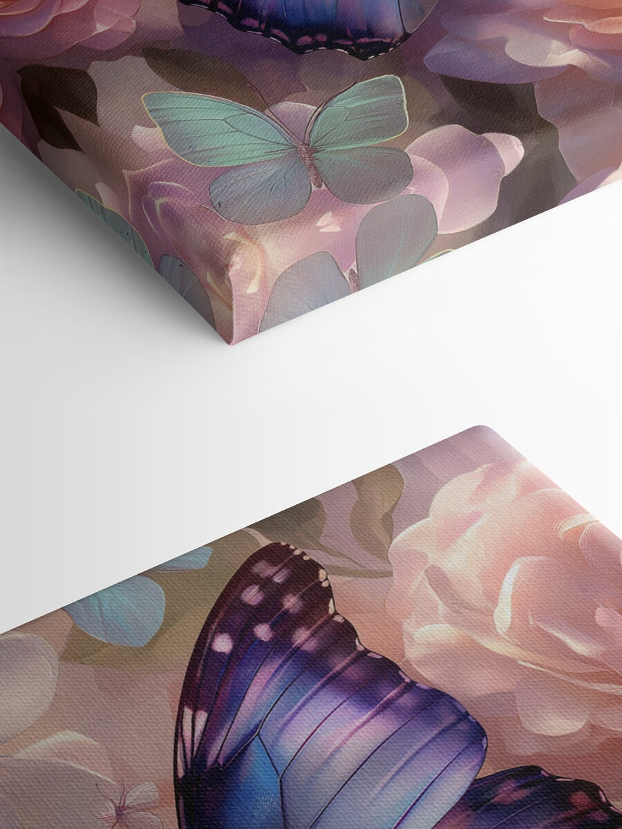 Imaginați-vă că vă treziți în fiecare zi cu această scenă frumoasă! “Fluturii dansează printre flori pastelate” – nu este acesta un gând de vis? Acest print pe pânză aduce un strop de natură chiar în spațiul tău. Acești fluturi vibranți, care flutură – aproape ca și cum s-ar fi oprit suficient de mult pentru ca tu să le observi aripile delicate și culorile moi, pastelate ale florilor. Perfect pentru toți cei care sunt înnebuniți după natură și doresc o notă de liniște pe pereții lor. Este ca și cum ai avea primăvara la cerere! Imaginați-vă asta în sufrageria dvs., întâmpinându-vă cu un zâmbet în fiecare dimineață. Este o bucățică de bucurie, menită să înveselească chiar și cea mai plictisitoare zi de luni. Iar pentru cei care adoră piesele de decor unice, aceasta vă strigă pe nume. Oferă colțișorului tău preferat o explozie de viață și culoare. Nu-i așa că sună minunat?