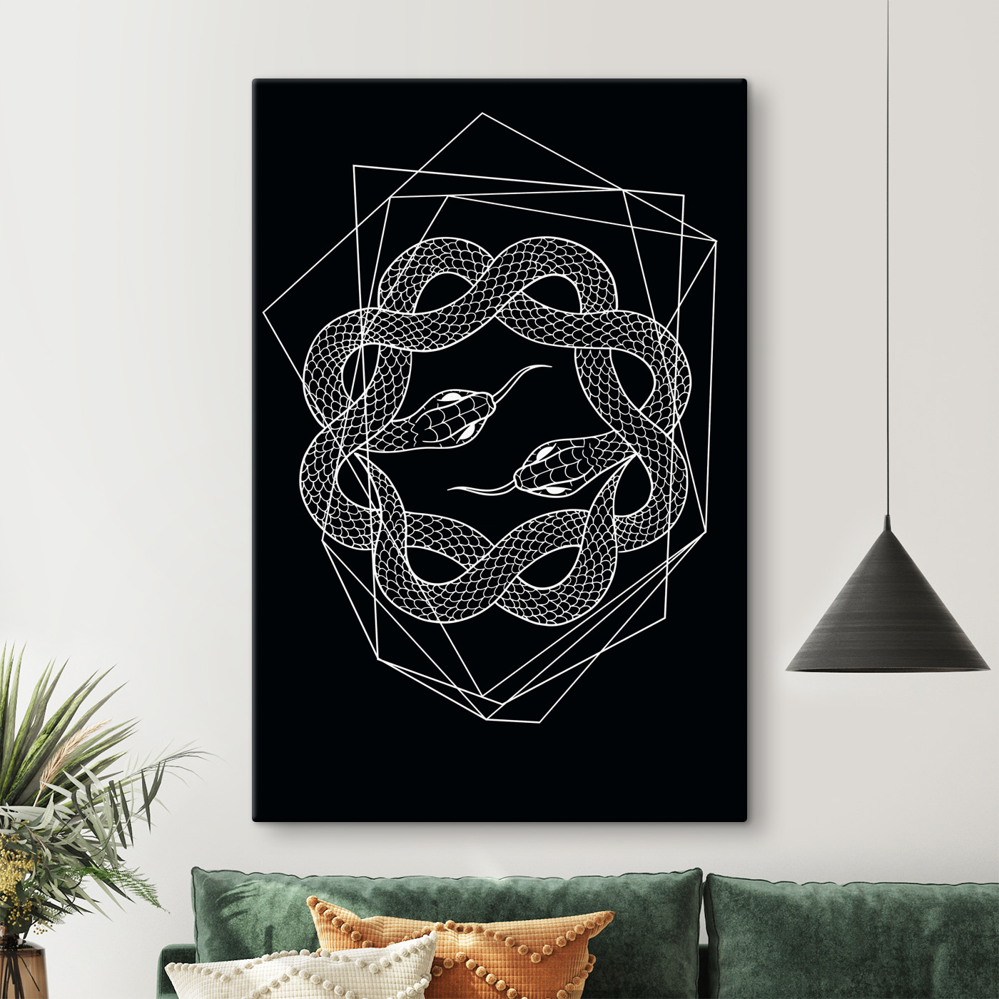 Bine, deci ia asta – o imprimare uimitoare pe pânză alb-negru cu acest desen complicat de șarpe! Parcă e ceva desprins dintr-un vis. Imaginați-vă că agățați acest tablou în sufragerie sau în birou; atinge echilibrul perfect între modern și mistic.