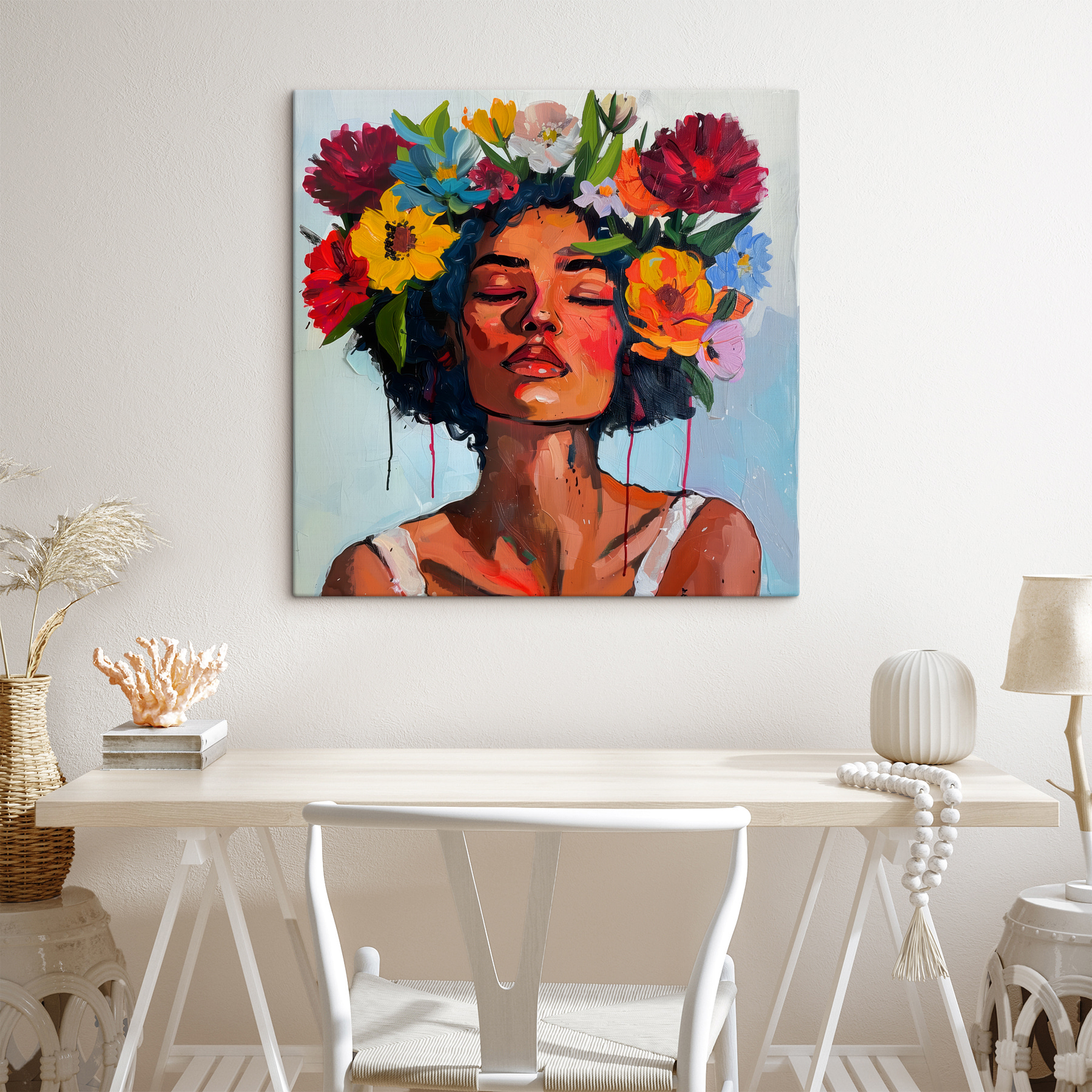 Scufundați-vă în lumea vibrantă a acestui print pe pânză uimitor, care prezintă o femeie împodobită cu un buchet de flori colorate în păr. Este ca și cum ai aduce o grădină veselă în interior, perfectă pentru a adăuga un strop de bucurie în orice cameră. Imaginați-vă că vă treziți în fiecare zi cu acest zâmbet radiant – cine nu s-ar simți înălțat? Loviturile îndrăznețe de pensulă și nuanțele vii inspiră creativitate și căldură, ceea ce o face o sursă încântătoare de conversație. Agățați-o deasupra canapelei sau într-un colț de lectură confortabil și lăsați frumusețea acestei piese să stârnească vise și zâmbete blânde în toți cei care o văd. Este mai mult decât o simplă artă; este un memento zilnic pentru a găsi bucurie în lucrurile mărunte – cum ar fi ceașca perfectă de cafea sau o după-amiază însorită!