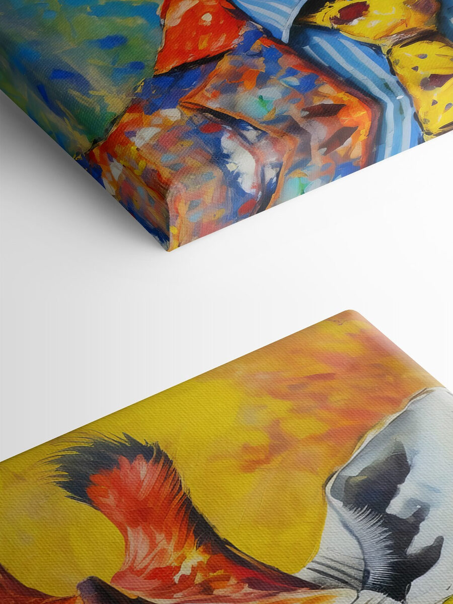 Ați dorit vreodată să aduceți un pic de safari chic în spațiul dvs.? Aruncați o privire la această imprimare pe pânză capricioasă de girafă! Nu este vorba despre orice girafă – imaginați-vă farmecul suav al unei girafe într-un costum elegant, îmbrăcată ca și cum ar fi pregătită pentru o noapte în oraș. Culorile vibrante vor ridica instantaneu vibe-ul oricărei camere, făcând-o să pară mai luminoasă și mai jucăușă.