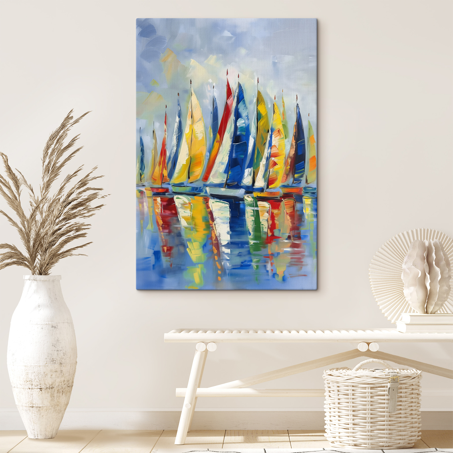 V-ați dorit vreodată o atingere a mării în spațiul dvs. de locuit? Aruncați o privire la acest print pe pânză intitulat “Pânze colorate pe o mare calmă”. Imaginați-vă acest lucru: o flotă de vele vibrante, ca un buchet de steaguri fericite, alunecând pe suprafața netedă și sticloasă a apei. Este vorba despre captarea acelui vibe visător și lipsit de griji pe care îl ai la malul mării. Imaginează-ți-l deasupra canapelei sau în biroul de acasă – ar aduce un strop de culoare și mult farmec. De fiecare dată când aruncați o privire în direcția lui, s-ar putea să simțiți briza răcoroasă a mării și să auziți valurile bătând ușor. Poate că este doza ta zilnică de zen – fără a fi nevoie să ieși din casă. Perfect pentru oricine iubește o notă proaspătă și înălțătoare în decorul său.
