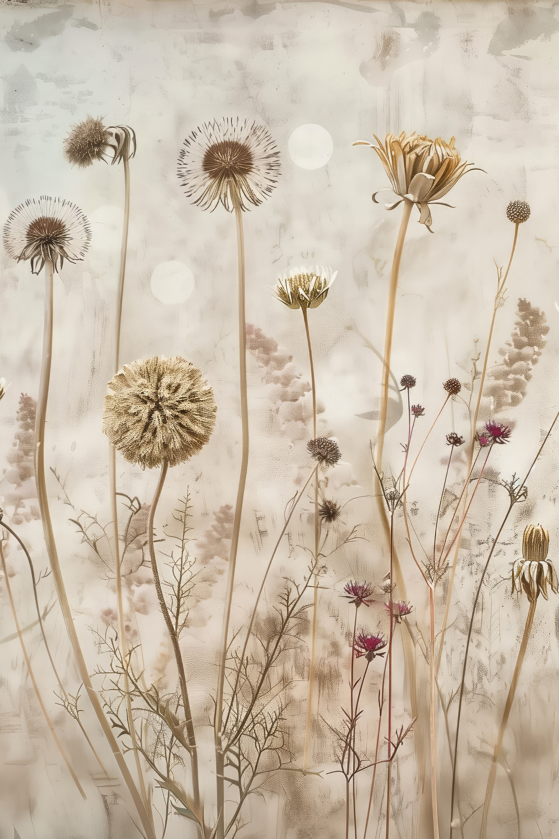 Aduceți o notă de seninătate rurală în casa dvs. cu această imprimare pe pânză a florilor sălbatice uscate. Imaginați-vă că vă plimbați printr-o pajiște liniștită – știți voi, acele momente calme, liniștite, când timpul se oprește. Această operă de artă surprinde perfect această vibrație.