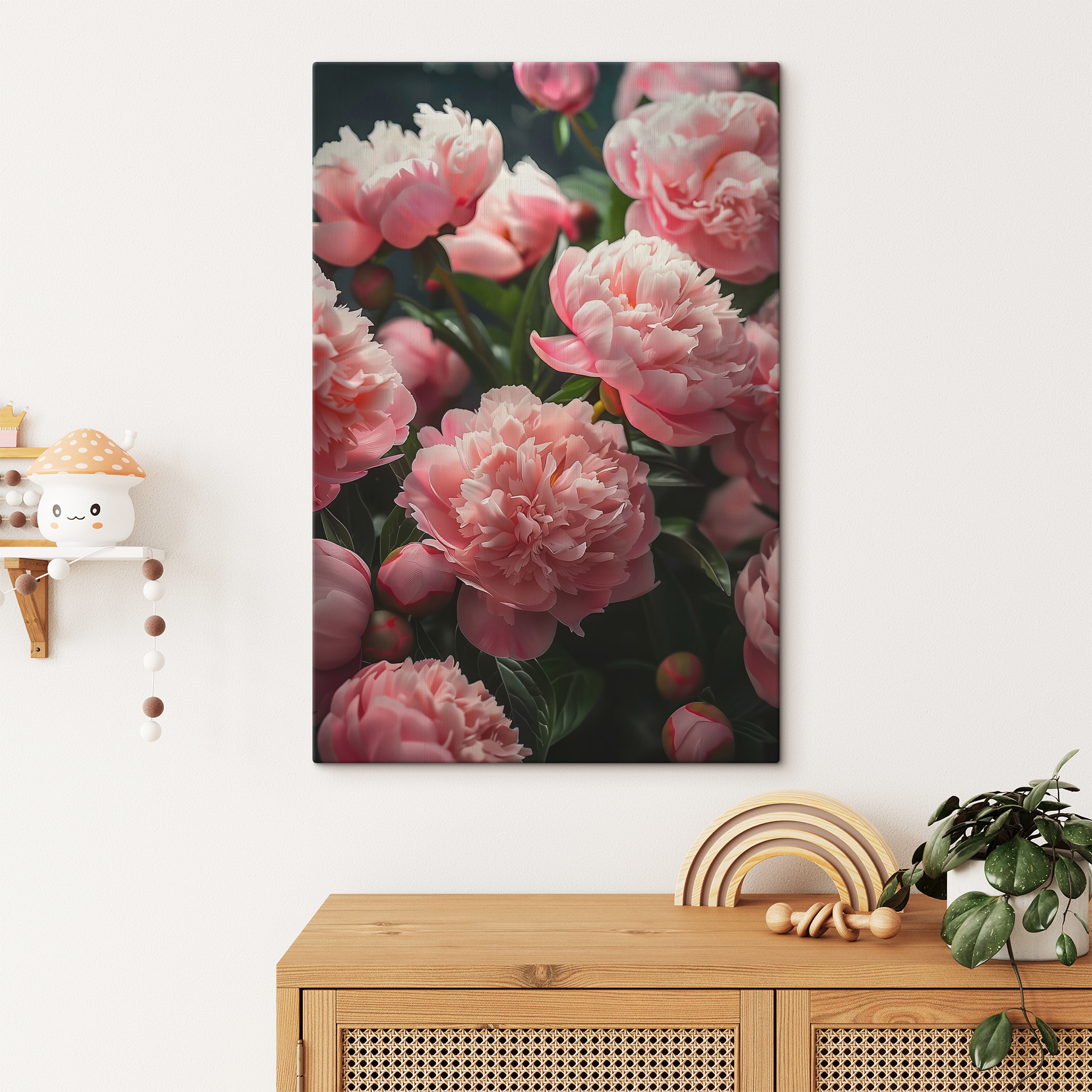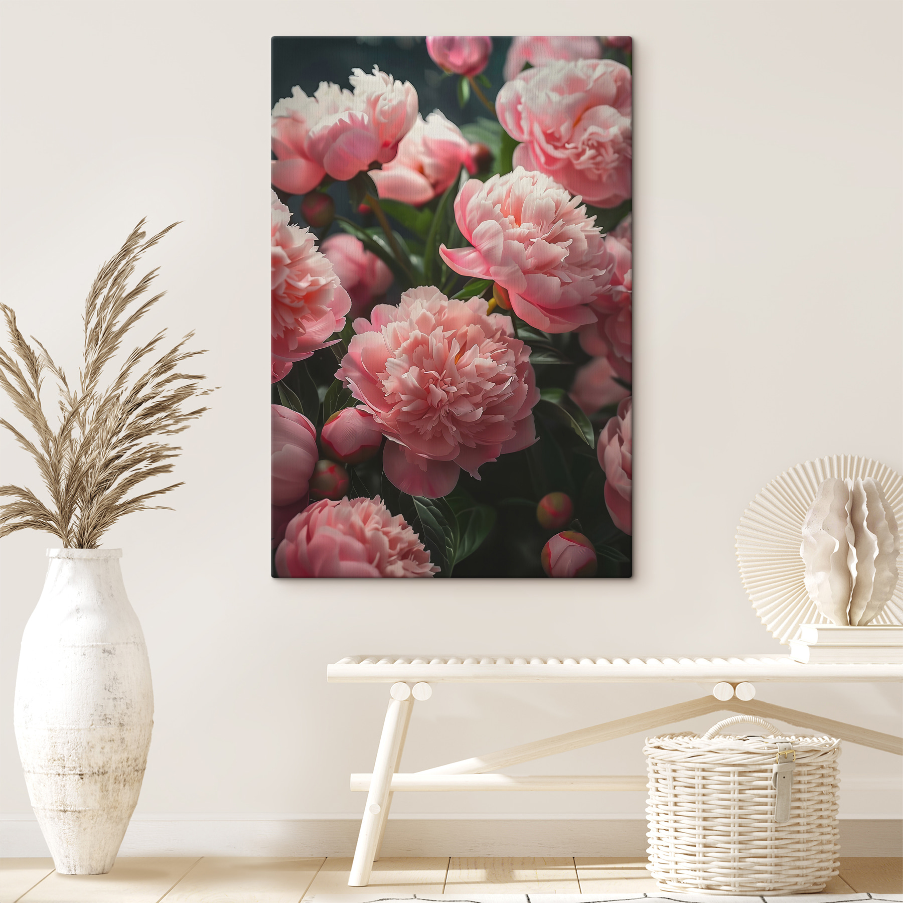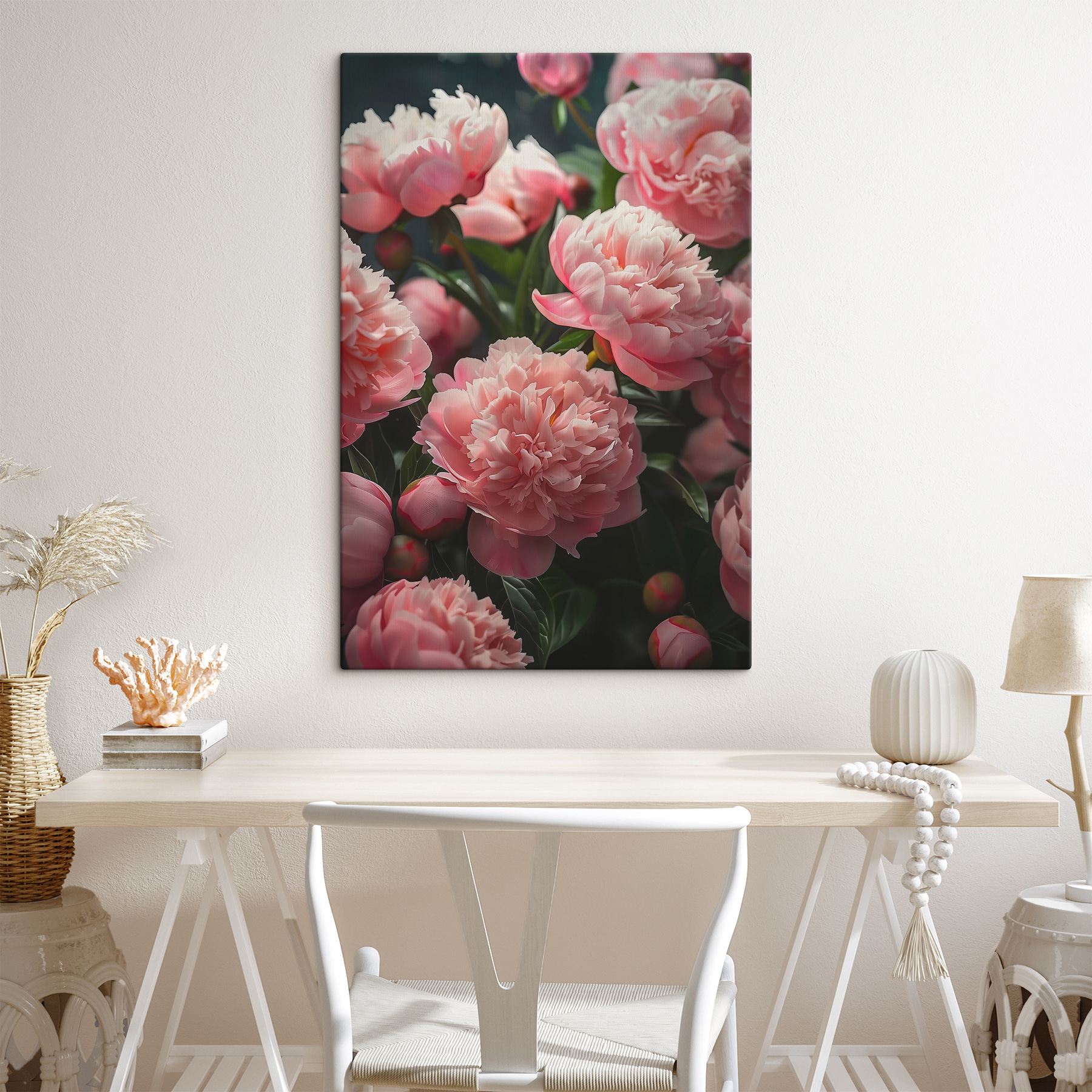 Imaginați-vă aceste frumuseți roz pe peretele dvs. – serios, este ca și cum ați aduce o gură de aer proaspăt de grădină chiar în casa dvs. Această imprimare pe pânză a unui buchet de flori roz este uimitoare și este perfectă pentru a adăuga un strop de veselie inspirată de natură în orice spațiu. Petalele moi sunt aproape tangibile, invitându-vă să le atingeți. Aveți un colț plictisitor în camera de zi? Boom, farmec instantaneu. Dormitorul arată un pic cam plictisitor? Aceste flori te-au prins. În plus, nu se ofilesc niciodată! Ai parte de un sezon nesfârșit de înflorire, fără a fi nevoie de degetul mare verde. Pun pariu că aceasta va deveni piesa preferată din colecția ta – este pur și simplu prea frumoasă pentru a nu deveni.