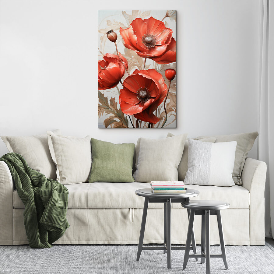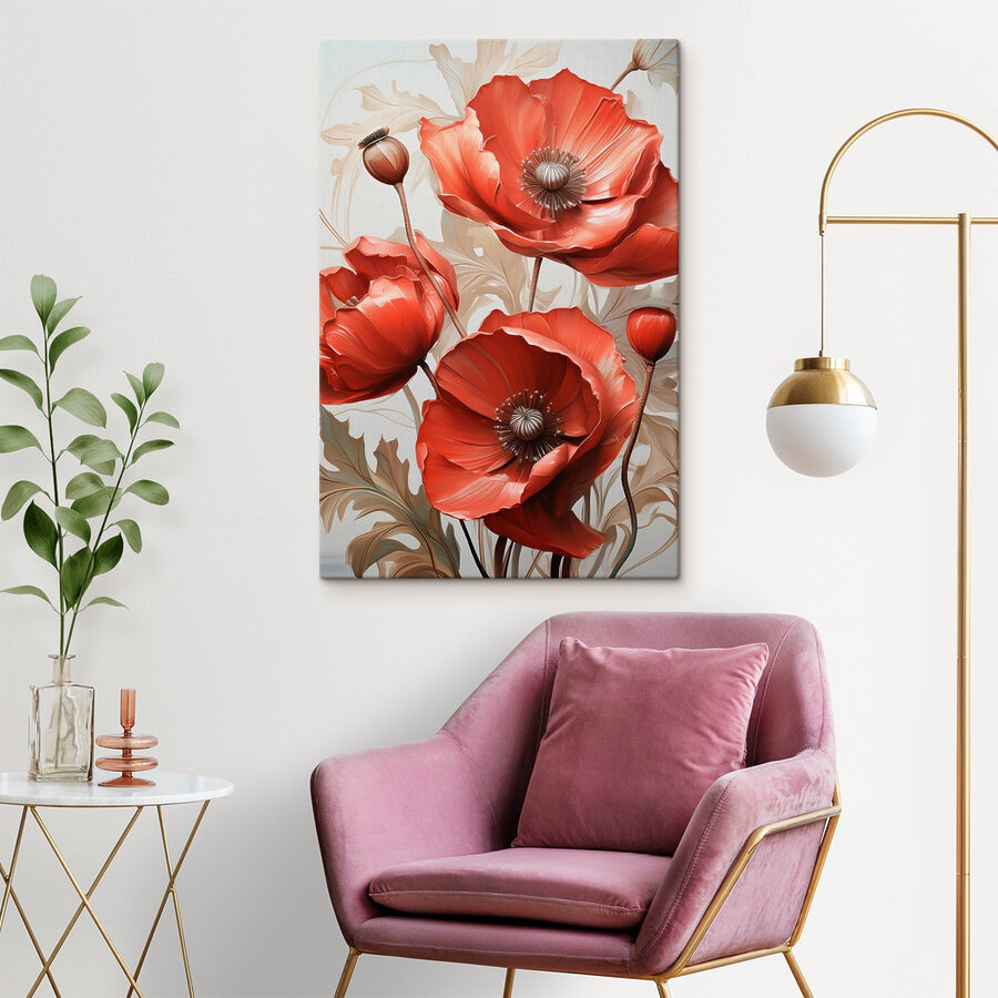 Înveseliți orice spațiu cu aceste flori roșii vibrante în floare. Este ca și cum ai avea o grădină însorită chiar pe perete, perfectă pentru zilele în care vremea pur și simplu nu cooperează! Imaginează-ți asta: intri într-o cameră și ești întâmpinat de flori luxuriante, supradimensionate, care practic îți șoptesc povești de primăvară. Ele adaugă un strop de culoare care transformă un perete plictisitor într-o sursă de conversație. Perfecte deasupra unei canapele sau a unui colț de lectură confortabil, aceste printuri pe pânză aduc bucurie și căldură. Este ca și cum ai reîmprospăta atmosfera casei tale, fără să ai nevoie de un deget verde sau de o vizită la florărie. Bucurați-vă de explozia de viață pe care o aduc!