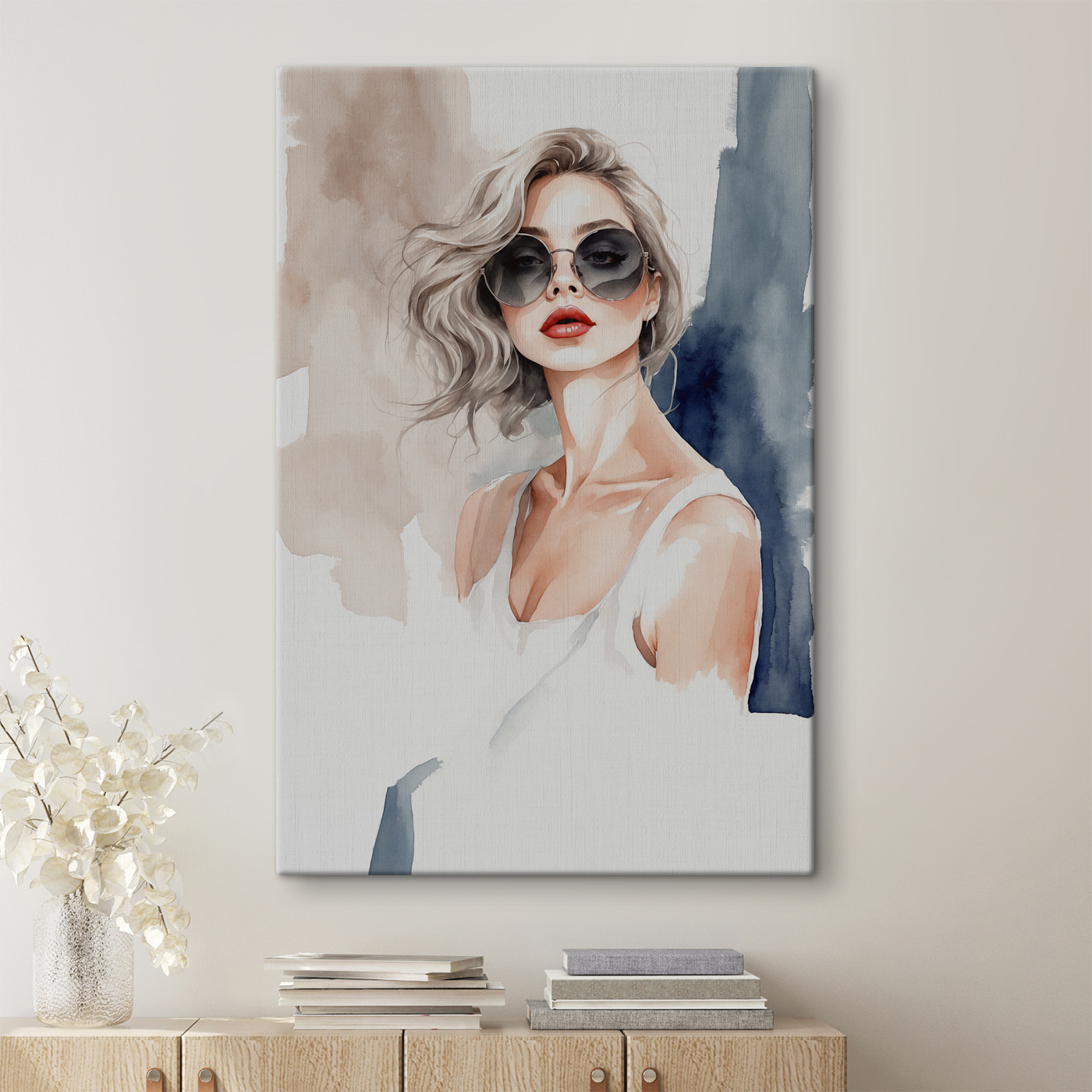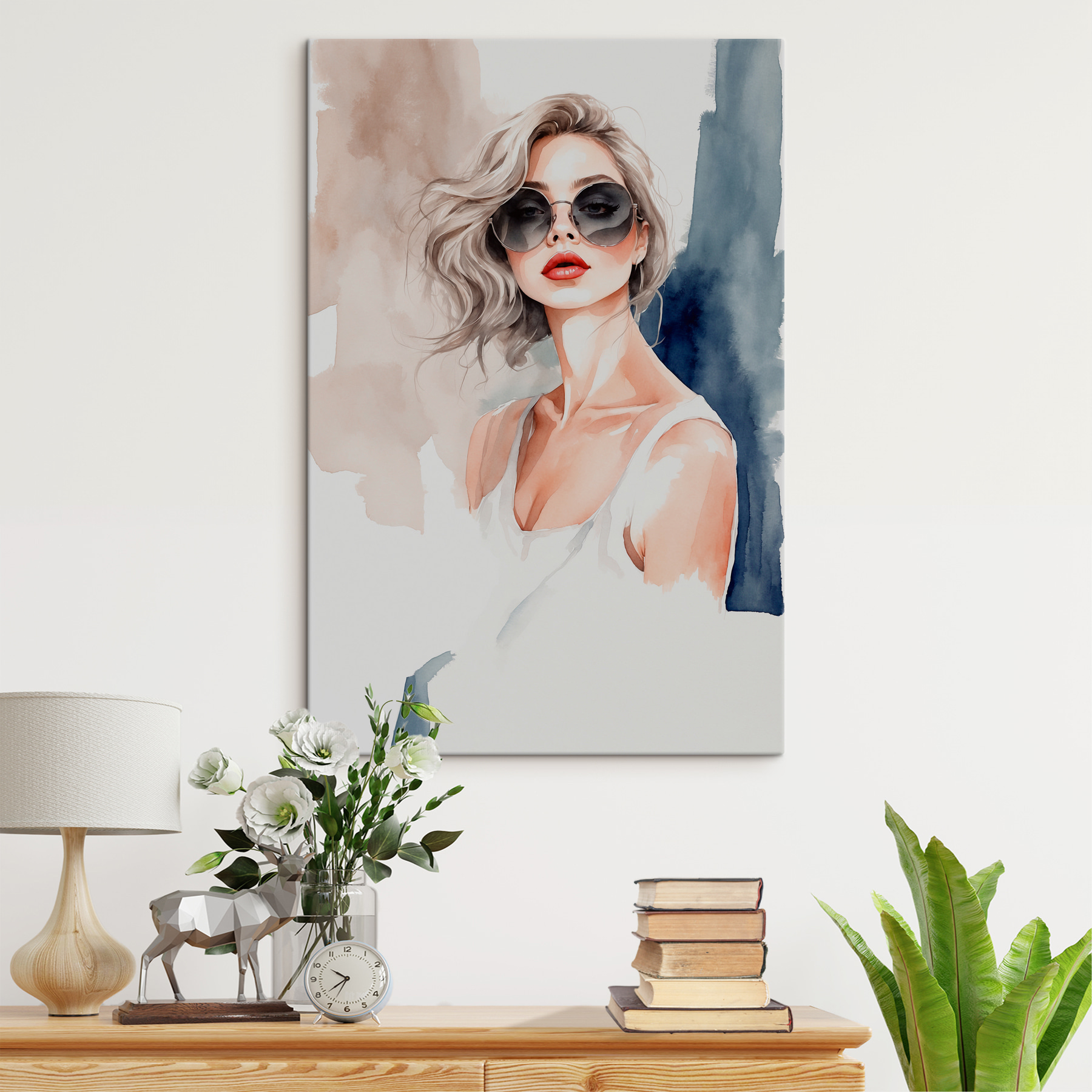 Aruncați o privire la această imprimare uimitoare pe pânză – “Tablouri s39158”. Are acea vibrație cool fără efort care va face pe oricine să se oprească și să admire. Stilul moale de acuarelă se îmbină perfect cu această figură încrezătoare și elegantă, care poartă ochelari de soare supradimensionați. Serios, este ca și cum tocmai a ieșit dintr-o revistă șic, gata să adauge o notă de rafinament spațiului tău.