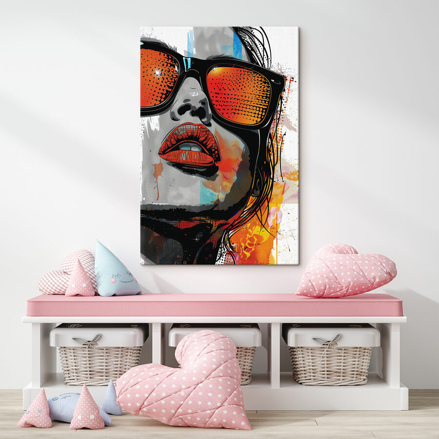 Aruncați o privire la această imprimare mortală pe pânză numită “Tablouri s39205” – un accesoriu orbitor pentru spațiul dvs. dacă vă place decorul unic și vibrant! Această piesă strigă vibrații cool cu amestecul său funky de artă abstractă și culori îndrăznețe, atrăgătoare. Imaginează-ți această piesă atârnată în sufrageria ta – ochelarii de soare care te privesc fix, stratificați în nuanțe bogate de portocaliu și roșu, adăugând acel pop de culoare perfect și un strop de atitudine.