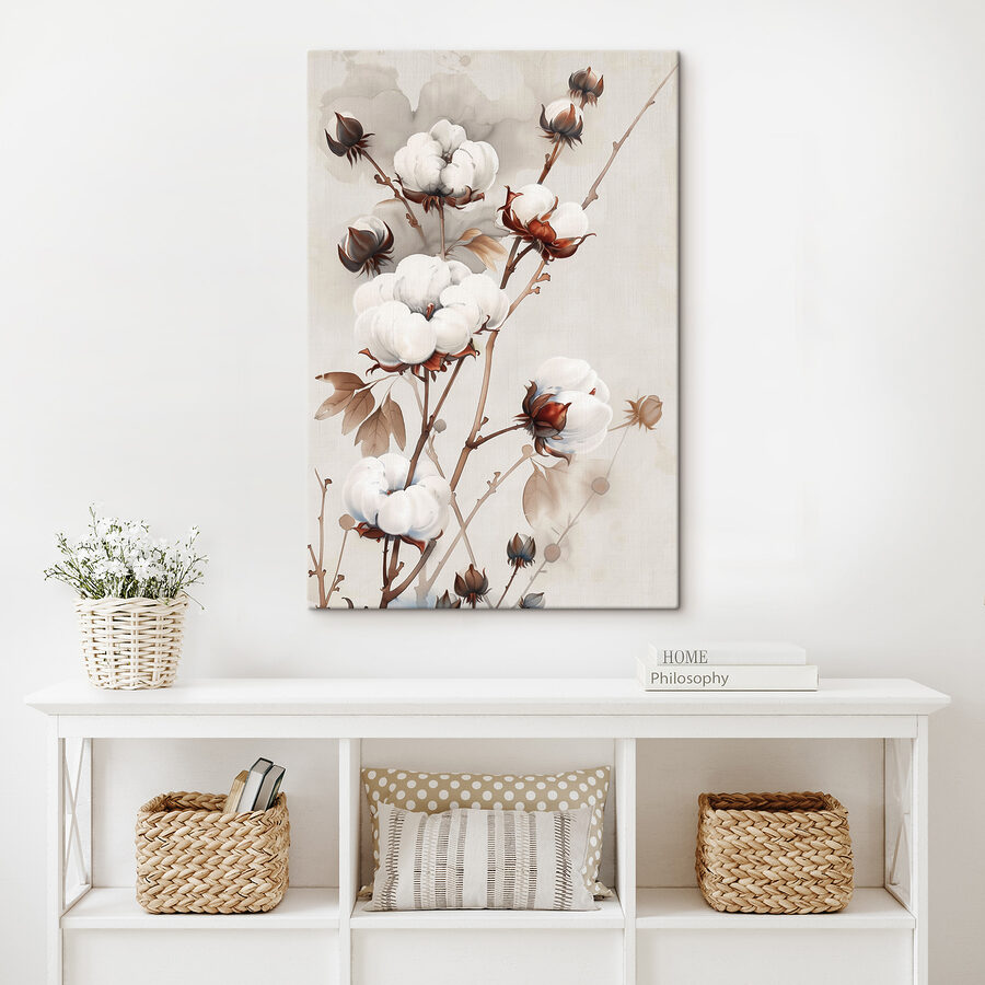 Aruncați o privire la printurile pe pânză s39215 – un strop blând de artă acuarelă care aduce o gură de aer proaspăt în spațiul dvs.! Aceste flori albe, moi și pufoase, contrastând cu maronii pământii și verdele subtil, practic șoptesc calm și căldură. Imaginați-vă acest lucru agățat în camera de zi sau în dormitor, adăugând o notă de natură senină în viața de zi cu zi. Este ca o plimbare printr-o grădină liniștită, fără să treci de fapt printr-o grădină!