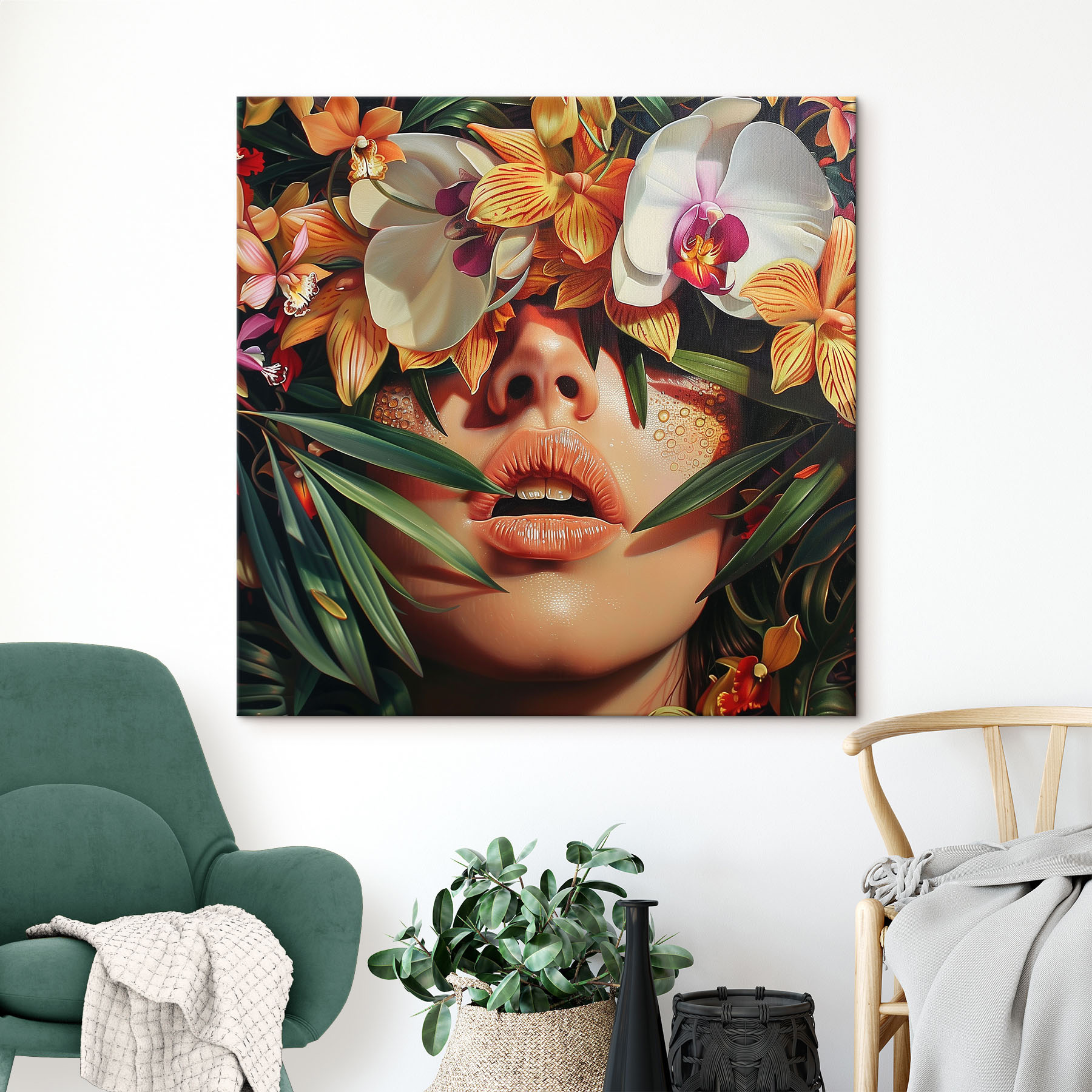 Transformați orice spațiu cu această imprimare captivantă pe pânză care strigă eleganță artistică! Imaginați-vă o femeie cu o coroană vibrantă de flori, expresia ei fiind un amestec de seninătate și mister. Este ca și cum ar invita natura în casa ta, șoptindu-ți secrete despre soare și grădini înflorite. Imaginați-vă această piesă ca un starter de conversație în timpul întâlnirilor; oamenii s-ar putea găsi captivat, împărtășind gânduri despre viață, flori și tot ceea ce este între ele. Această pictură murală nu stă doar frumos – aduce căldură, bucurie și un strop de capriciu floral pe pereții dvs. Perfectă pentru un colțișor confortabil, o zonă de luat masa sau oriunde îți umblă spiritul creativ!