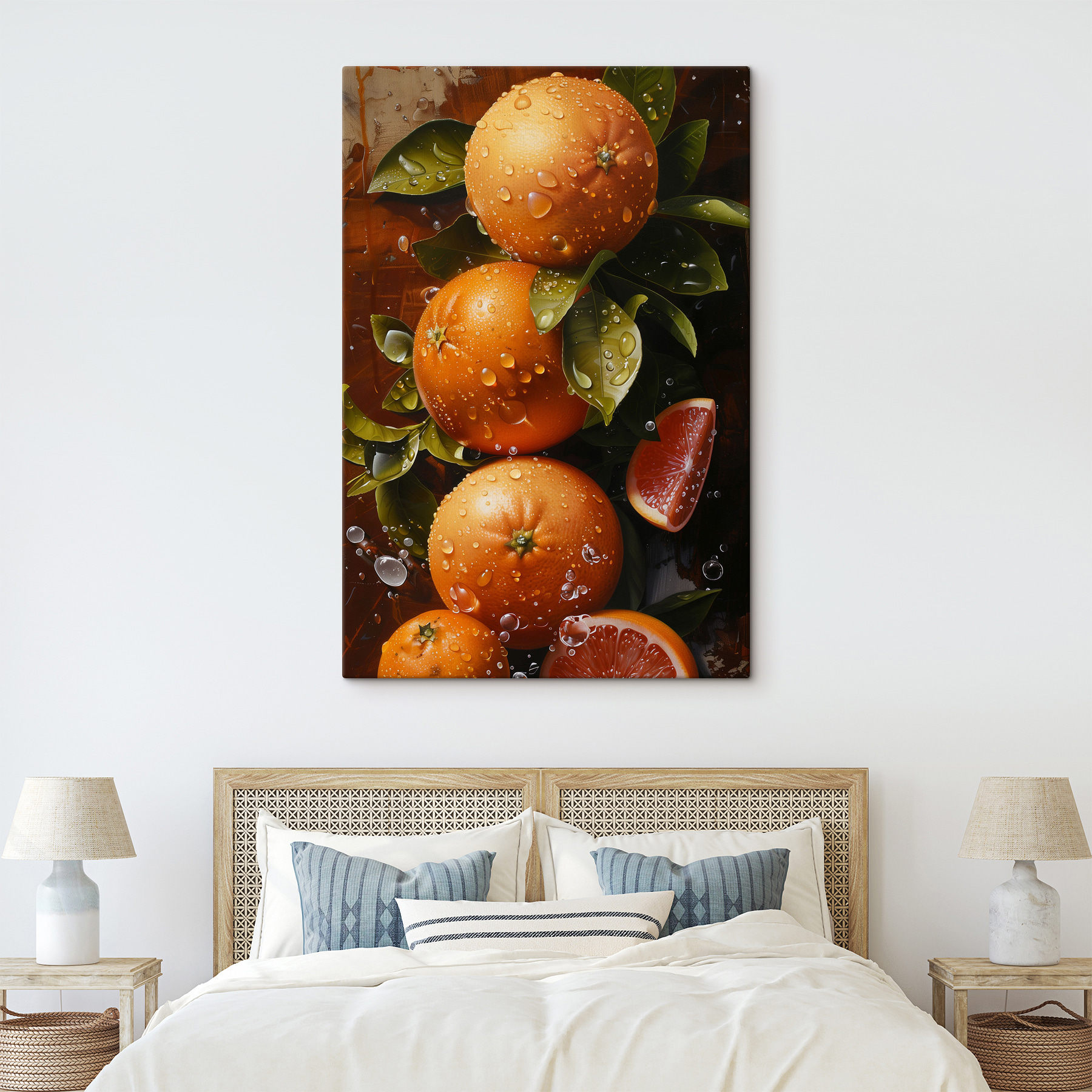 Luminează orice spațiu cu această imprimare uimitoare pe pânză de portocale suculente, completată cu frunze vibrante și felii zemoase. Este ca și cum ai aduce o felie de soare în interior – perfect pentru bucătării sau zone de luat masa. Imaginați-vă că vă treziți în fața acestei culori proaspete, portocalele strălucind ca și cum tocmai ar fi fost culese dintr-o livadă. Această piesă nu este doar artă; este o amintire veselă a distracției de vară și a gustărilor indulgențe. Fie că inspiră o salată de fructe sau pur și simplu stârnește bucurie, vizitatorii vor întreba despre gustul tău impecabil în materie de decor. Cine ar fi crezut că portocalele pot stârni atâtea discuții?