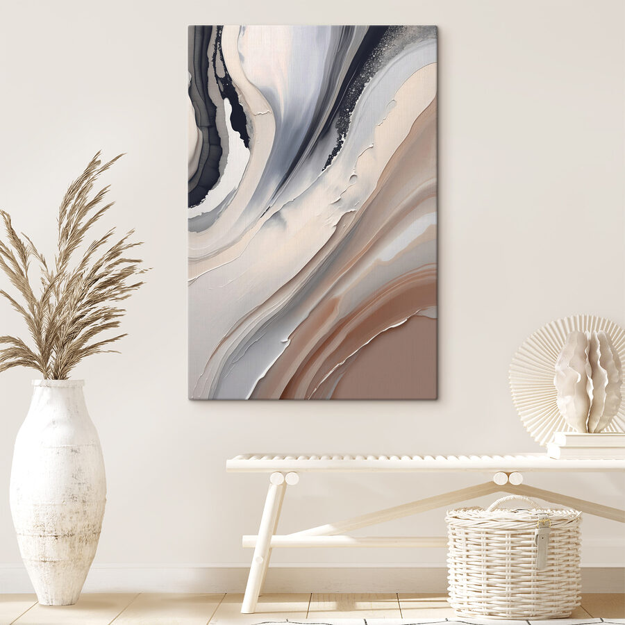 “Tablouri Earthy Tones in Fluid Motion” se simte ca o gură de aer proaspăt, nu-i așa? Imaginează-ți această piesă atârnată în sufrageria ta – ca și cum ai avea un val calm de nisip și mare învârtindu-se pe peretele tău. Nuanțele pământii se mișcă ca poezia în mișcare, șoptind pace în cameră. Perfectă pentru cineva care a privit cerul cum își schimbă culorile și s-a gândit: “Da, am nevoie de asta”. Prietenii ar putea trece pe aici și să spună: “Wow!” Tu doar vei da din cap, simțind că ai îmbuteliat liniștea. Un dans blând de culori și stări de spirit.