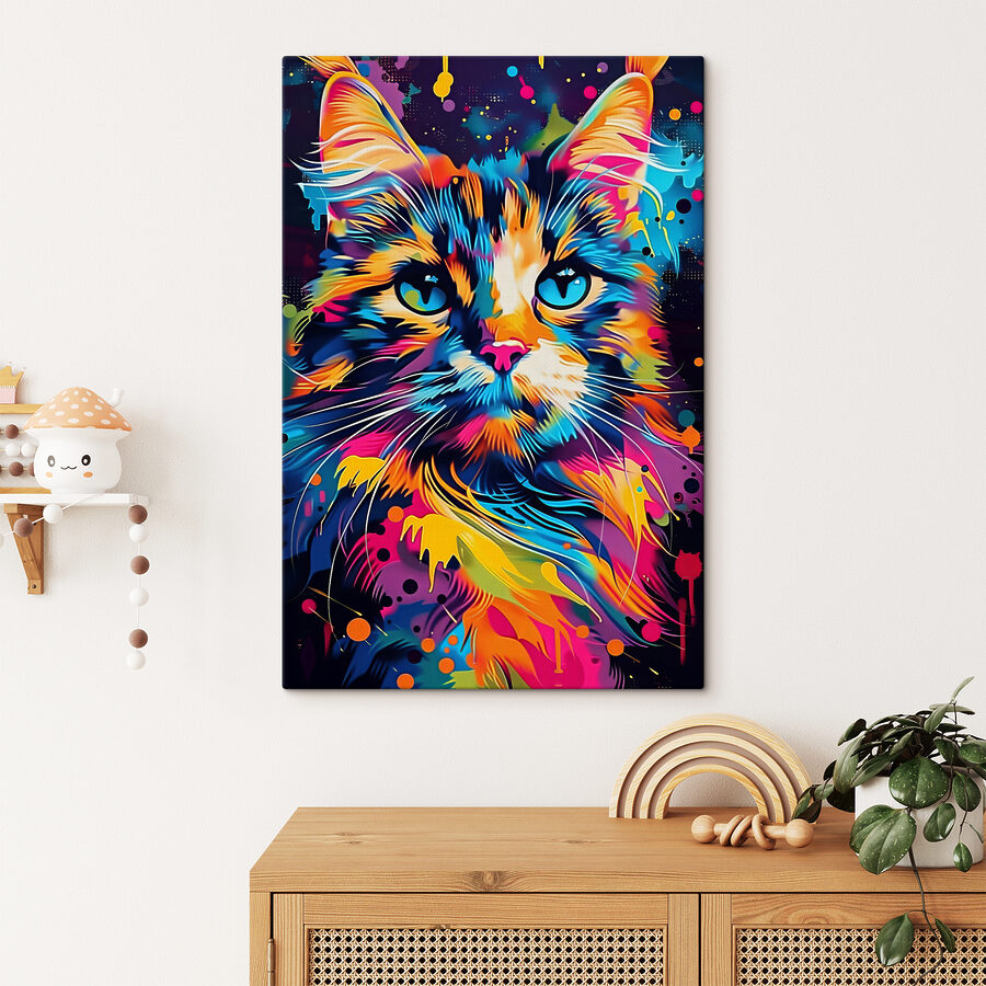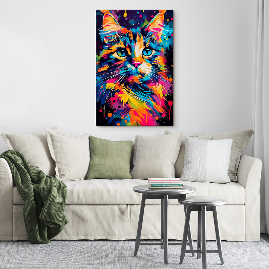 Uitați-vă la această imprimare pe pânză – “Tablouri s39314”. Sincer, este ca și cum un caleidoscop a explodat și o pisică a trecut prin el. Amestecul vibrant de culori pe fundal este pur și simplu izbitor, aproape că simți că pisica se uită direct în sufletul tău (în cel mai încântător mod). Perfectă pentru a adăuga un strop de culoare oricărui spațiu, această pânză strigă personalitate. Imaginați-vă că aveți această explozie de culoare în sufragerie sau în birou, ridicându-vă instantaneu starea de spirit de fiecare dată când treceți pe acolo… Este ca o terapie prin artă zilnică! Fie că sunteți un iubitor de pisici, un fan al decorului îndrăzneț sau doar apreciați arta unică, această piesă face o declarație. În plus, oaspeții dvs. vor comenta despre ea – “De unde ați luat această piesă uimitoare?”, vor întreba ei. Pregătiți-vă pentru complimente!