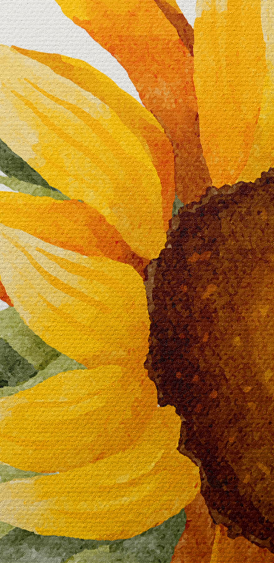 Înveseliți orice cameră cu această imprimare fermecătoare pe pânză de acuarelă cu o floarea-soarelui care, practic, debordează de vibrații vesele! Imaginați-vă că intrați în spațiul dvs. și simțiți instantaneu căldura unei zile de vară. Tușele moi ale pensulei dau viață florii-soarelui, invitând la zâmbete și visări cu ochii deschiși. Este perfectă pentru un colțișor confortabil, o bucătărie veselă sau chiar pentru a face ca acel birou fad să pară puțin mai primitor. Această piesă combină fără efort frumusețea naturii cu flerul artistic, creând un sentiment de pace și bucurie. Suspendați-o și lăsați sentimentele bune să curgă!