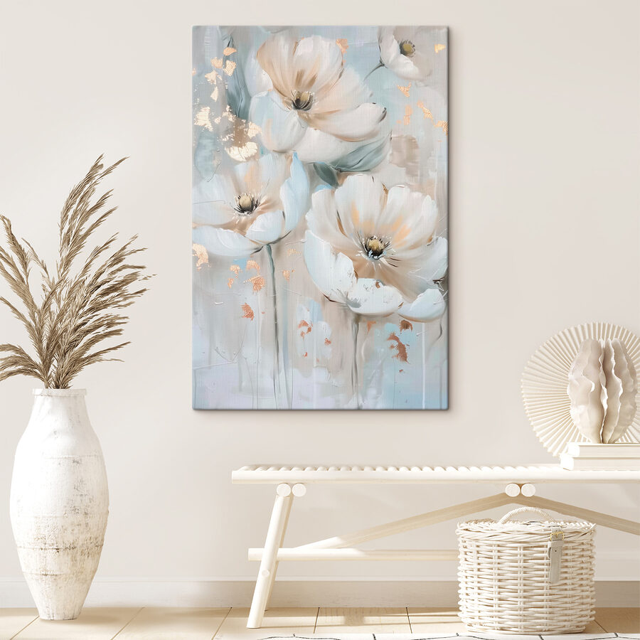 Această imprimare uimitoare pe pânză, “Tablouri s39352”, este ca o gură de aer proaspăt pentru pereții dvs.! Imaginați-vă că veniți acasă după o zi lungă, vă așezați pe canapea și sunteți întâmpinați de aceste flori de vis – ca o șoaptă blândă a naturii din interior. Amestecul delicat de culori și florile delicate aproape că se vor legăna în bătaia vântului… dacă ferestrele ar fi deschise.