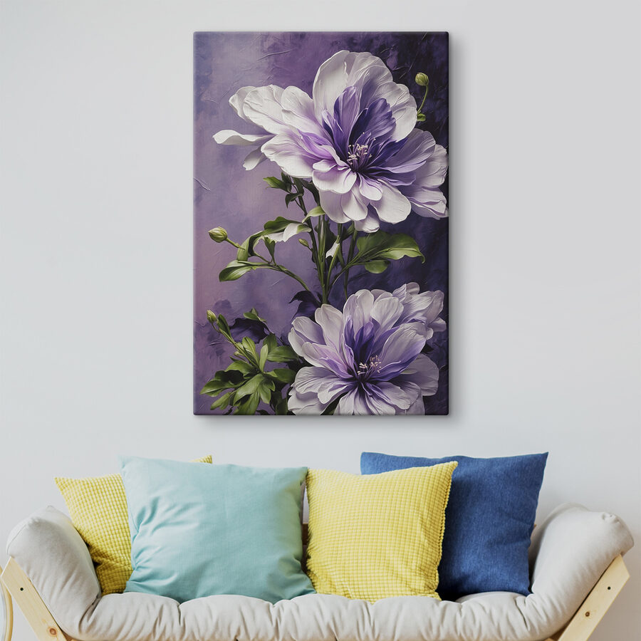 “Tablouri s39368” – un melanj frumos de artă, flori vibrante și magie de acuarelă. Imaginați-vă acest lucru: intrați în sufrageria dvs. și acolo este… o explozie de purpuriu delicat și verde luxuriant – o adevărată plăcere pentru ochi! Pun pariu că vă ridică instantaneu starea de spirit – ca o petrecere în grădină chiar pe peretele dvs. Fiecare petală pare aproape palpabilă, invitând la admirație și visare cu ochii deschiși. Fie că vă sorbiți cafeaua de dimineață sau vă relaxați după o zi lungă, această piesă aduce la viață o fantezie florală! Este ca și cum Mama Natură însăși ar fi încercat cu niște pensule de acuarelă. Perfect pentru oricine dorește să adauge un strop de natură – fără să ude. Pregătiți-vă pentru câteva momente majore “De unde ai luat asta?” atunci când prietenii vin la noi!
