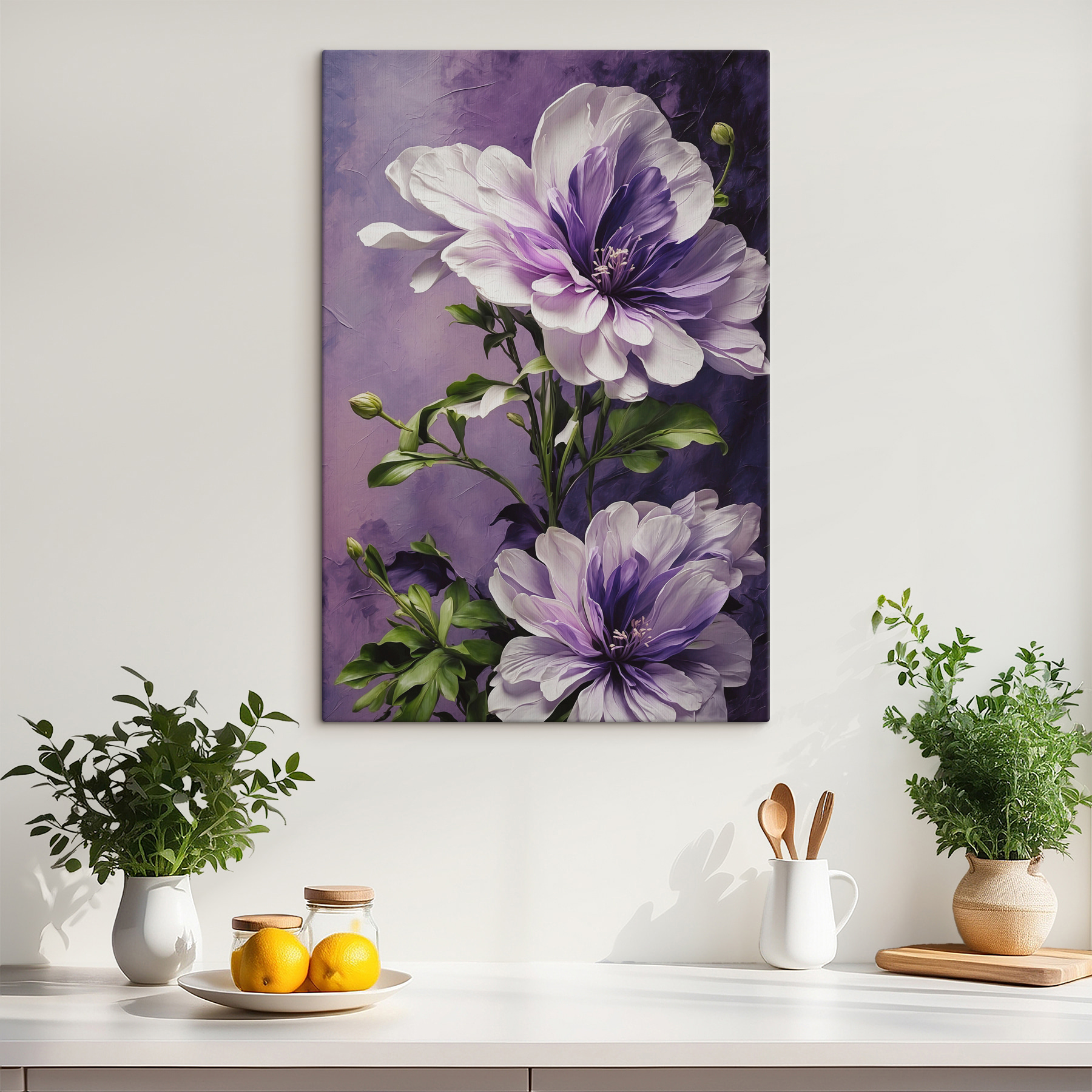 “Tablouri s39368” – un melanj frumos de artă, flori vibrante și magie de acuarelă. Imaginați-vă acest lucru: intrați în sufrageria dvs. și acolo este… o explozie de purpuriu delicat și verde luxuriant – o adevărată plăcere pentru ochi! Pun pariu că vă ridică instantaneu starea de spirit – ca o petrecere în grădină chiar pe peretele dvs. Fiecare petală pare aproape palpabilă, invitând la admirație și visare cu ochii deschiși. Fie că vă sorbiți cafeaua de dimineață sau vă relaxați după o zi lungă, această piesă aduce la viață o fantezie florală! Este ca și cum Mama Natură însăși ar fi încercat cu niște pensule de acuarelă. Perfect pentru oricine dorește să adauge un strop de natură – fără să ude. Pregătiți-vă pentru câteva momente majore “De unde ai luat asta?” atunci când prietenii vin la noi!