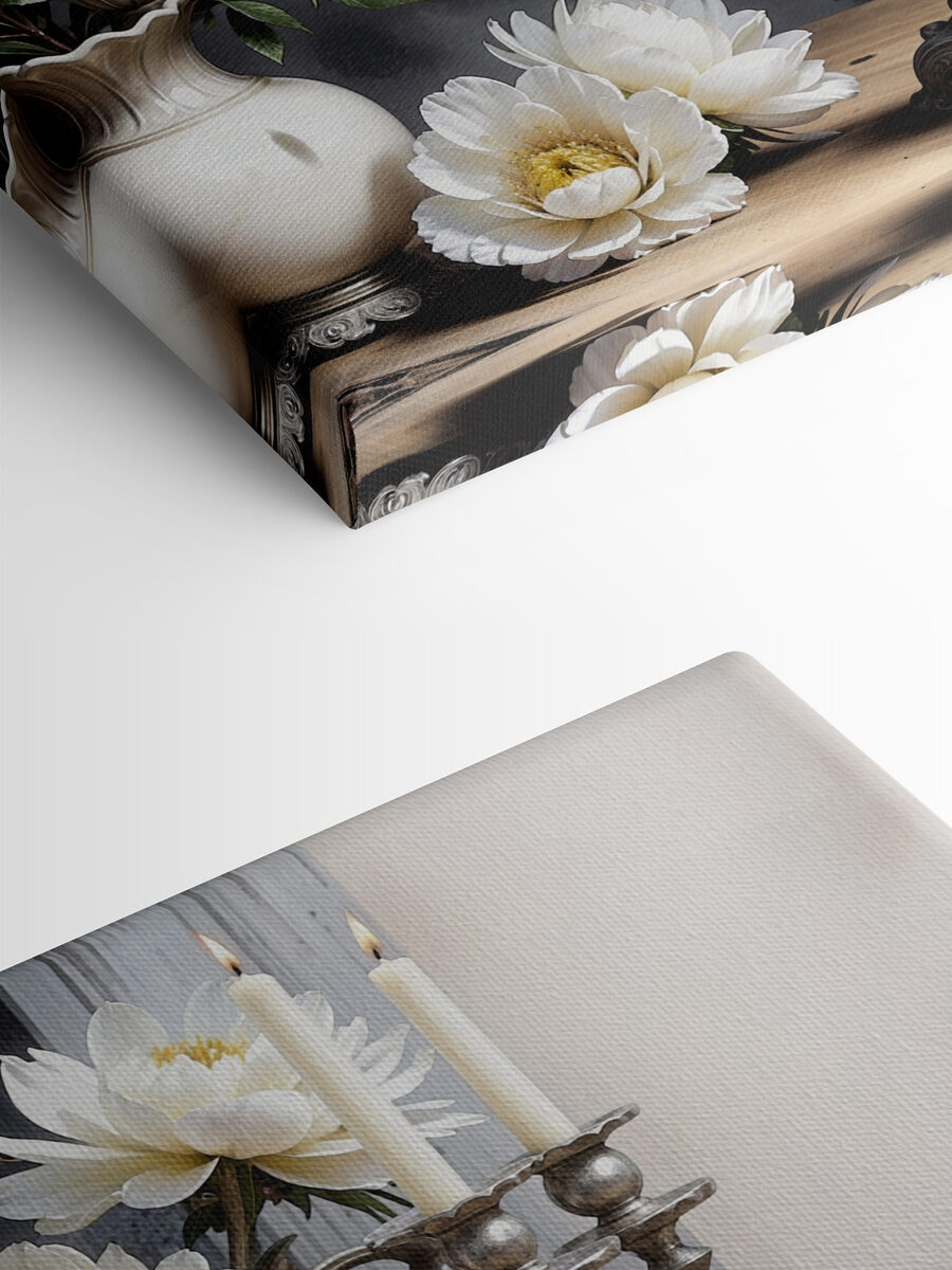 Imaginați-vă că intrați într-o cameră confortabilă și vă simțiți imediat întâmpinați de farmecul acestui print pe pânză. Acesta surprinde un candelabru uimitor care adăpostește flori albe și moi. Perfect pentru a adăuga căldură, este ca și cum ai invita un prieten la ceai, chiar dacă stai singur. Scena elegantă șoptește povești despre cine la lumina lumânărilor și întâlniri vesele. Ar arăta fabulos deasupra unui șemineu sau chiar într-un spațiu de luat masa – aducând o notă de grație fără a fi prea formal. Fiecare privire ar putea stârni puțină bucurie, amintindu-vă că frumusețea este peste tot, chiar și în cele mai obișnuite zile.