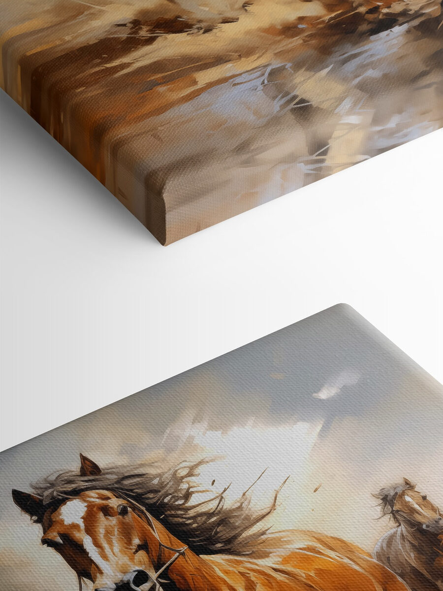 Imaginați-vă galopând în sufrageria dvs. – sălbatic și liber – de fiecare dată când aruncați o privire la această imprimare fabuloasă pe pânză! “Tablouri s39436” surprinde acel sentiment electrizant al cailor neîmblânziți care atacă prin furtună. Aproape că poți simți vântul bătându-ți prin păr, nu-i așa? Este perfect pentru momentele în care ai nevoie de puțină energie sprintenă – sau doar de ceva cu adevărat epic pentru a-ți anima spațiul. Agață-l în birou, în sufragerie sau oriunde; este ca și cum ai avea o fereastră secretă într-o lume în care aventura nu se oprește niciodată. În plus, opera de artă detaliată… este pur și simplu hipnotizantă, ca o mică explozie de magie pe peretele tău!