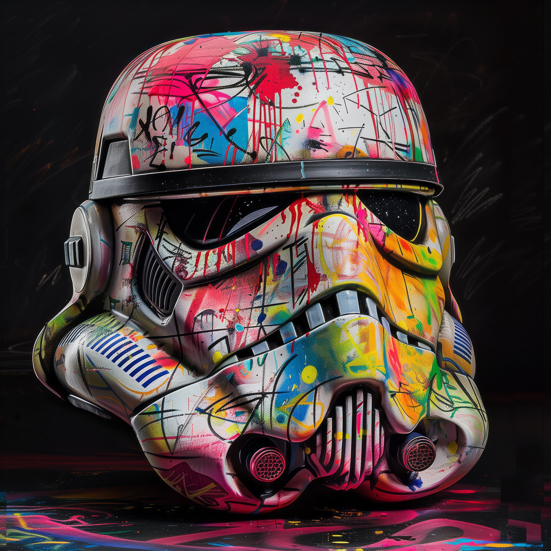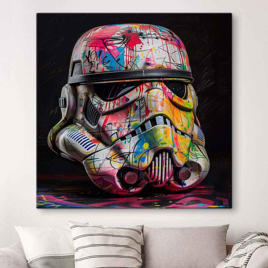 Scufundați-vă într-o lume în care cultura pop întâlnește arta jucăușă cu “Tablouri Colorful Storm Trooper Helmet”. Această piesă izbitoare nu este doar artă de perete; este un starter de conversație. Imaginați-vă că intrați într-o cameră și sunteți întâmpinați de această cască vibrantă, stropită cu culori sălbatice și un fler inconfundabil. Ea aduce un vibe proaspăt, funky, care poate topi seriozitatea vieții de adult. Imaginează-ți o seară confortabilă de jocuri sau o reuniune ocazională – această pânză adaugă acea notă jucăușă perfectă. Este ca și cum ai avea o bucată de galaxie care spune o poveste, așteptând doar să o descoperi.