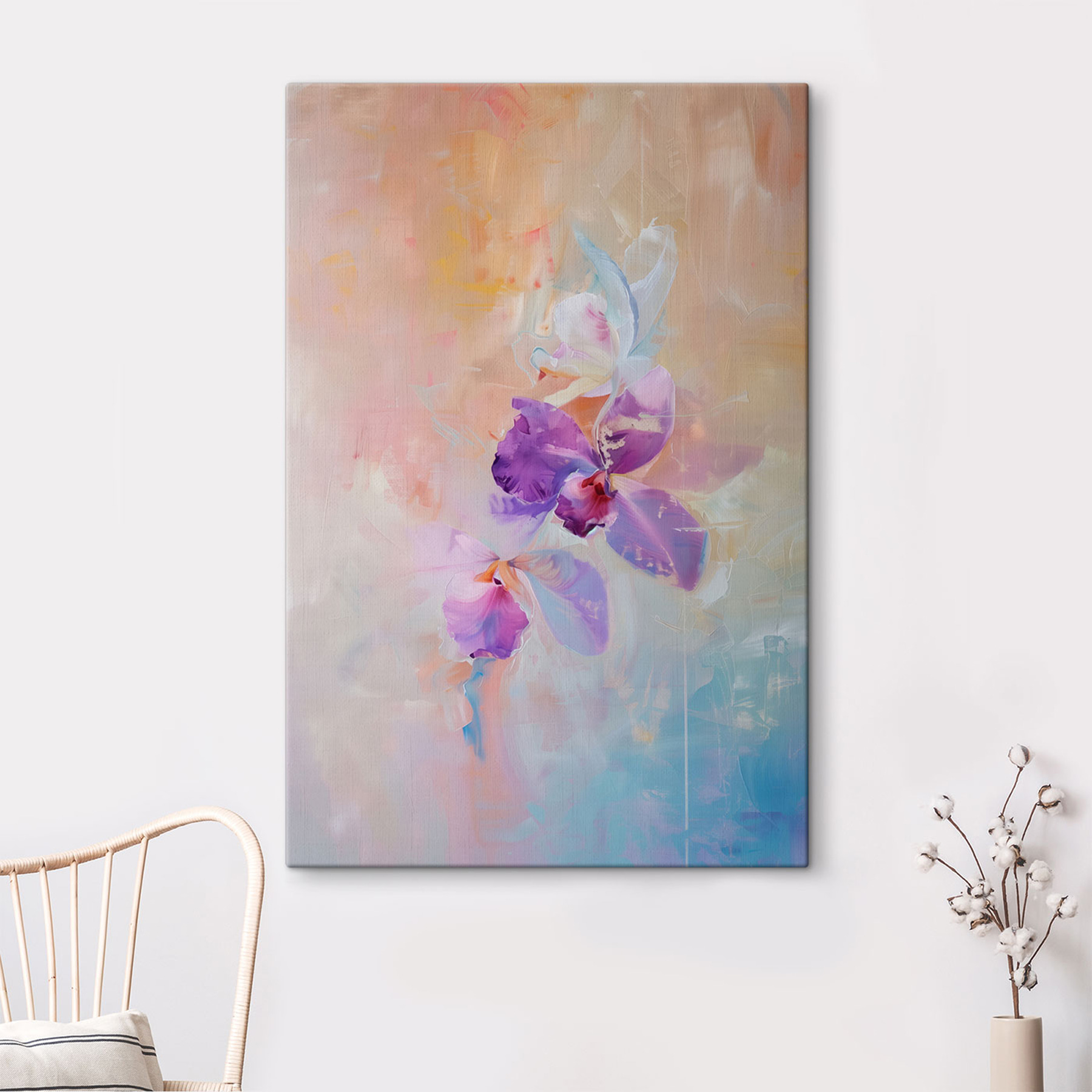 Transformați-vă spațiul cu această pânză încântătoare cu flori mov uimitoare. Aceasta îmbină fără efort culorile liniștitoare cu un strop de vibrație, fiind ideală pentru orice cameră care tânjește după o notă de căldură. Imaginați-vă că intrați în casa dvs. și sunteți întâmpinați de aceste flori pline de viață, un stimulent perfect după o zi lungă. Fie că sunt agățate într-un colț confortabil sau deasupra unei canapele șic, cu siguranță vor stârni bucurie și conversații. În plus, este o modalitate fantastică de a păstra o bucățică de natură în interior, fără a fi nevoie de udare. Această operă de artă îi va face pe toți să se simtă ca acasă.