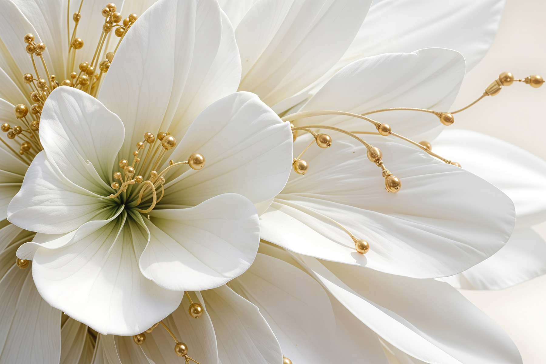 Imaginați-vă că pășiți într-o cameră în care eleganța întâlnește natura. “Tablouri Elegance in White and Beads” face exact asta! Această piesă uimitoare prezintă petale albe luxuriante care par să înflorească direct de pe pânză, atrăgându-vă în frumusețea sa senină. Este ca și cum ai avea o mică grădină în casa ta, dar fără udare.