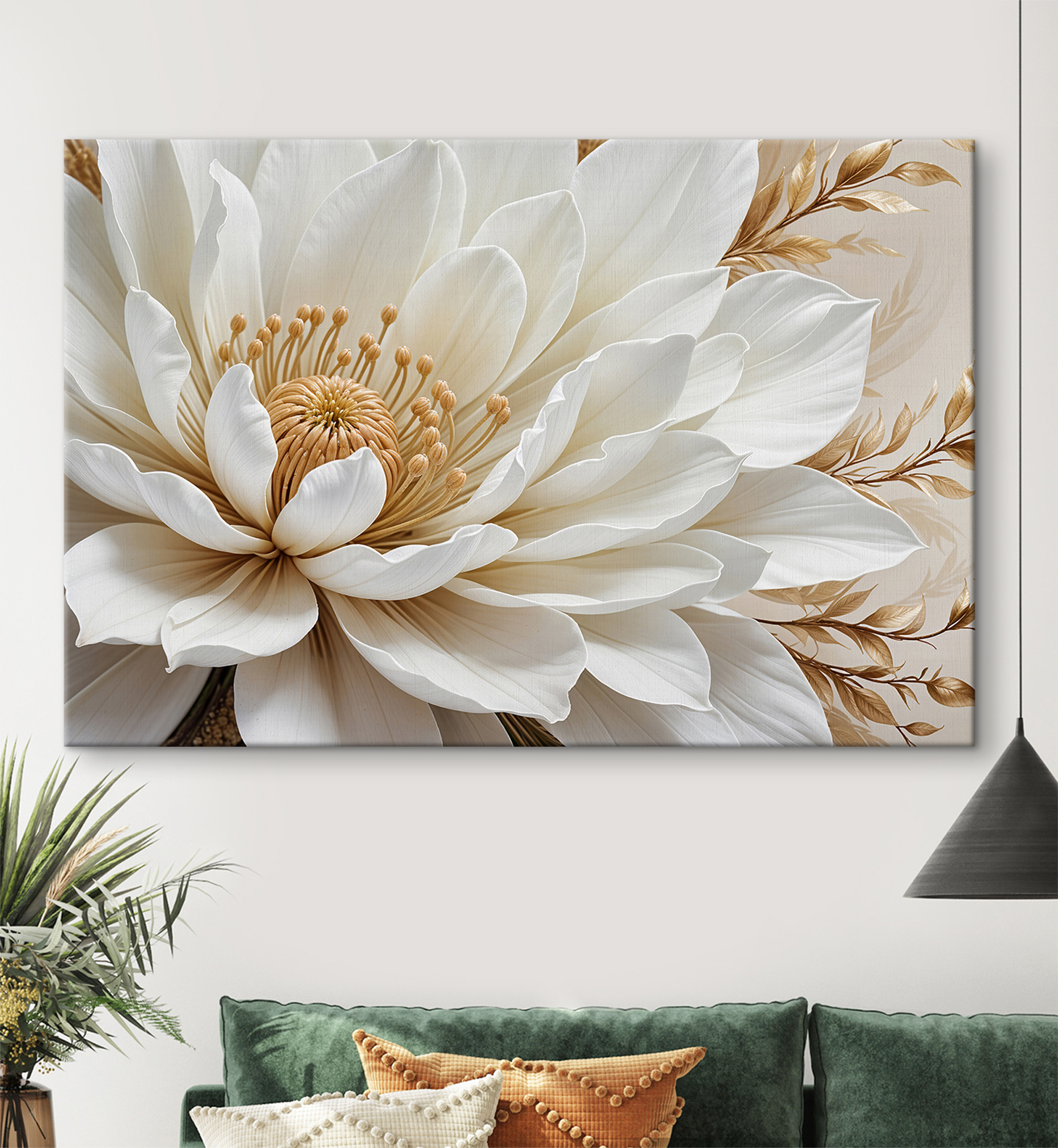 Imaginați-vă că pășiți într-o oază senină de fiecare dată când priviți această imprimare pe pânză, “Elegant Bloom in Creamy Whites”. Cu petalele sale moi desfășurându-se grațios, această operă de artă aduce un sentiment de calm căruia este greu să îi reziști. Imaginați-vă-o agățată într-un living confortabil sau poate într-un dormitor liniștit – este ca un memento blând de a respira profund. Prietenii s-ar putea opri și admira, spunând: “Wow, ce frumos este!” Nuanțele subtile se îmbină perfect cu diferite stiluri de decor, fiind piesa perfectă pentru a înveseli orice spațiu. Dacă pereții ar putea vorbi, acesta ar șopti noutăți dulci despre eleganță și liniște.