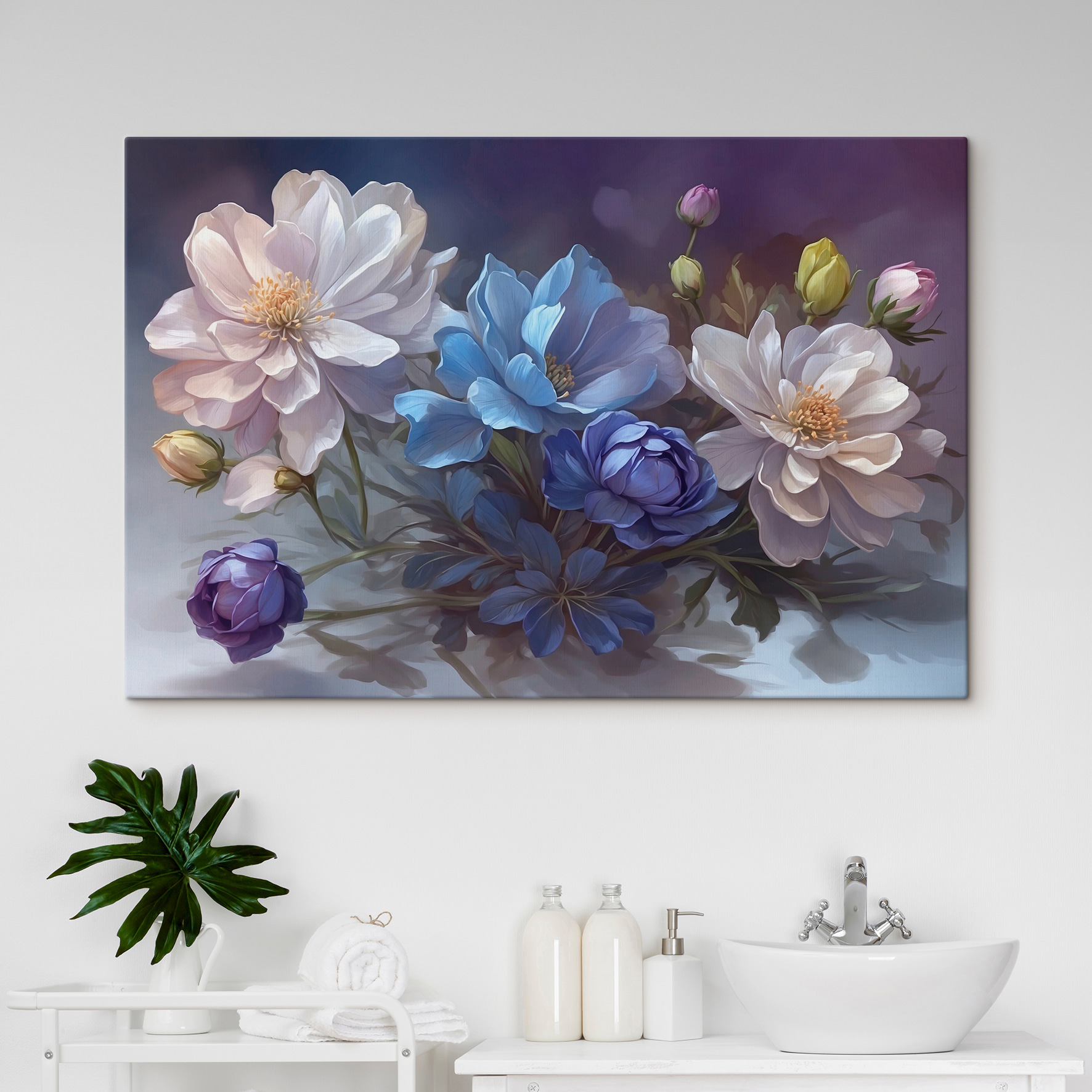 Această imprimare pe pânză – numită cu afecțiune “Tablouri s39603” – este ca o șoaptă blândă de primăvară chiar în sufrageria dvs.! Cu un amestec de vis de alb, albastru și purpuriu moale, este perfect pentru oricine iubește frumusețea senină a florilor. Imaginați-vă acest lucru: Sunteți relaxat cu o ceașcă de ceai, o carte bună și această piesă uimitoare pe perete. Florile vibrante, dar liniștitoare, creează o atmosferă confortabilă, primitoare, care te face să vrei să stai în casă și să… fii.