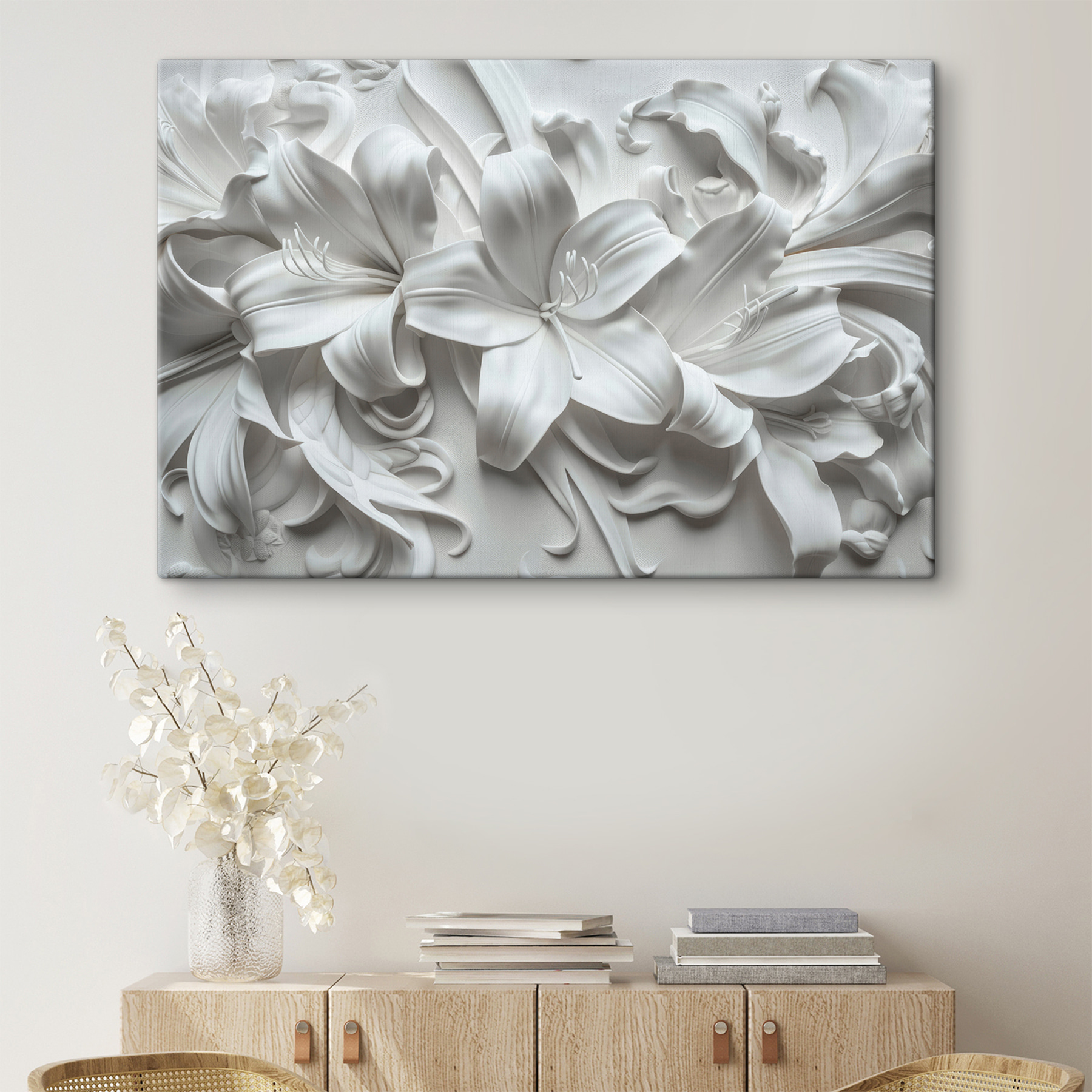 Transformați orice spațiu cu această imprimare uimitoare pe pânză, care prezintă o floare albă delicată care se relaxează pe o suprafață albă. Este un amestec minunat de simplitate și eleganță care va face pe oricine să se oprească și să respire puțin mai adânc. Imaginați-vă această piesă agățată într-un colț confortabil, poate chiar lângă o ceașcă de cafea aburindă. Modul în care lumina se reflectă în nuanțele sale subtile poate ridica instantaneu vibrația unei încăperi. Perfectă pentru cei care apreciază frumusețea discretă, această operă de artă șoptește rafinament, invitând în același timp la vibrații calde, liniștitoare. Este ca o îmbrățișare blândă pentru pereții dvs.