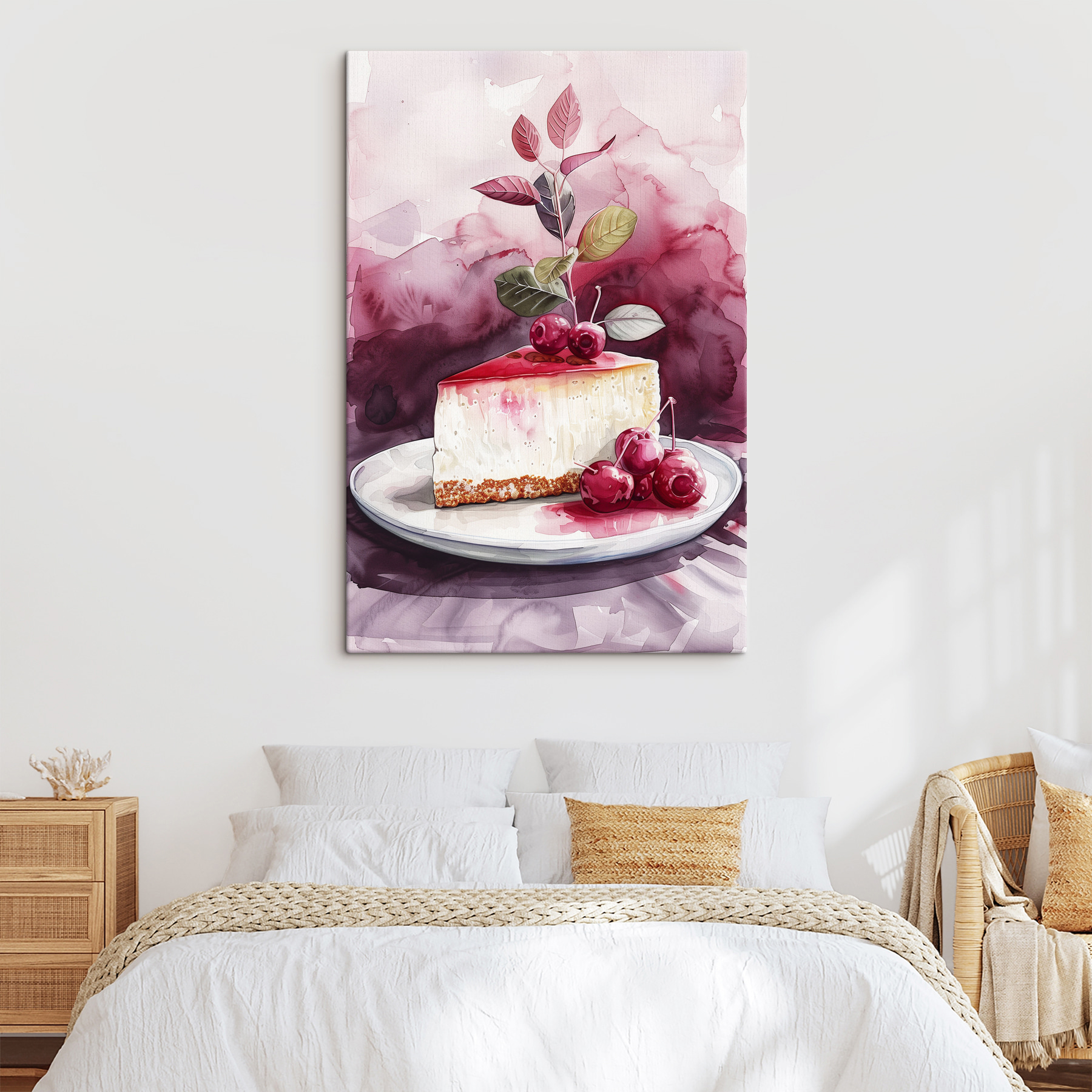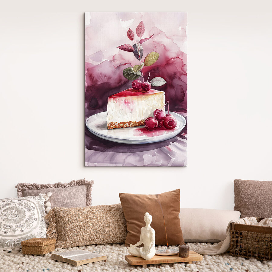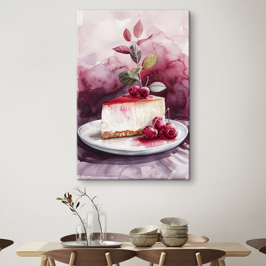 Ai o poftă de dulce? “Tablouri s39700” este piesa perfectă pentru a adăuga o notă de visare și deliciozitate spațiului tău! Această operă de artă fermecătoare prezintă o felie apetisantă de cheesecake acoperită cu cireșe strălucitoare – aproape că arată destul de bună pentru a fi mâncată… dar poate nu încercați asta!