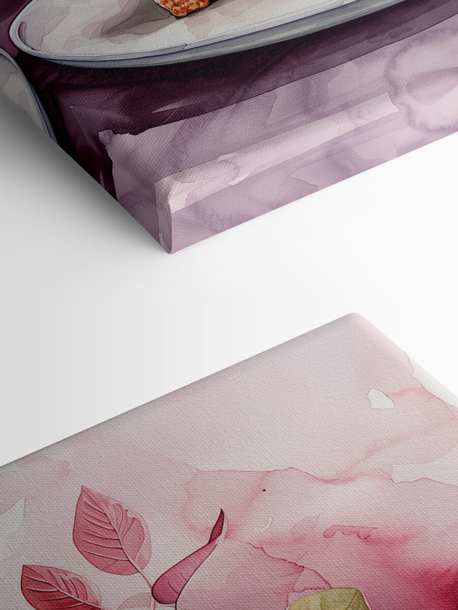 Fundalul acuarelă se învârte în nuanțe moi de roz și violet, creând o atmosferă confortabilă și caldă. Imaginați-vă că agățați acest tablou în bucătărie sau în sufragerie – cu siguranță va stârni niște conversații încântătoare. Imaginați-vă acest lucru: prieteni adunați în jurul lor, poate amintindu-și de deserturile preferate pe care le-au încercat sau de rețetele pe care le-au creat. Acest print nu este doar agățat pe perete; aduce un element de căldură și ospitalitate.