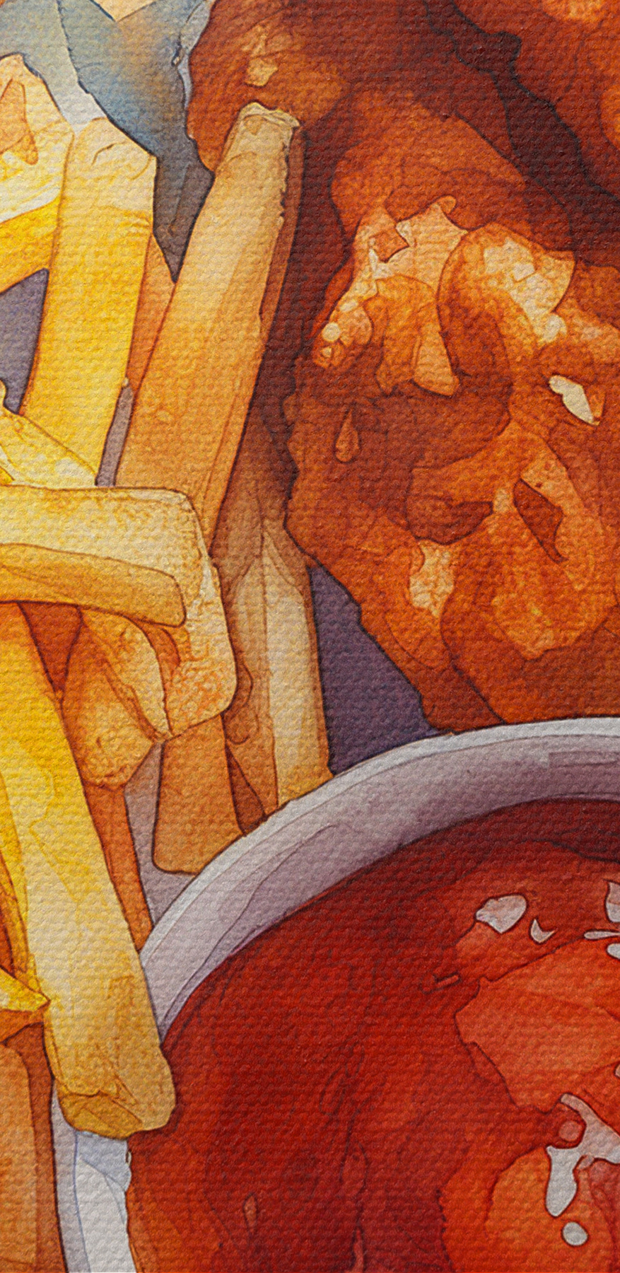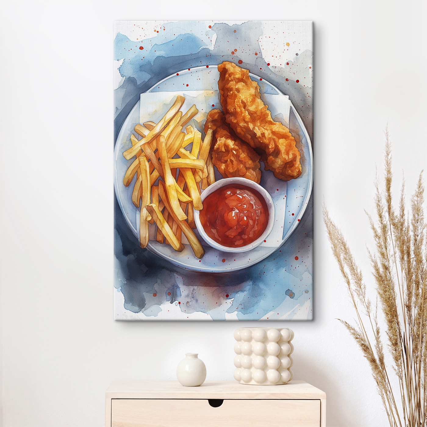 Transformați orice perete într-o atmosferă confortabilă de restaurant cu această încântătoare imprimare pe pânză cu fâșii de pui și cartofi prăjiți. Este suficient pentru a face gura apă oricui, nu-i așa? Imaginați-vă pălăvrăgeala veselă a prietenilor și a familiei care se adună în jurul lor, cu farfuriile pline cu acest duo gustos. Această piesă de artă nu arată doar bine, ci oferă acea energie caldă, de bun-simț, care luminează un spațiu, făcându-vă să poftiți la o gustare nocturnă sau la o gustare leneșă după-amiază. Fie că este agățată într-o bucătărie sau într-o sufragerie, stârnește nostalgia mușcăturilor rapide și a momentelor fericite. Adăugați un strop de distracție decorului dvs. cu această imprimare delicioasă!