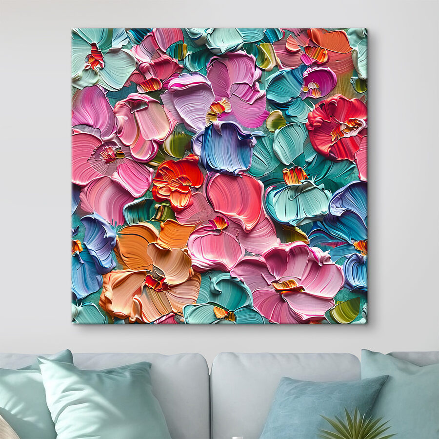 Luminați orice perete cu această piesă captivantă, “Tablouri Rainbow Petals Dance in Light”. Imaginați-vă că intrați într-o cameră și sunteți întâmpinați de o explozie de flori care arată ca și cum ar fi fost culese dintr-o grădină vie. Fiecare petală pare să se legene cu bucurie, invitându-vă în îmbrățișarea sa colorată. Este ca și cum natura a decis să organizeze o petrecere, iar tu ești invitatul de onoare. Perfectă pentru o cameră de zi confortabilă sau pentru un spațiu de lucru creativ, această lucrare de artă va stârni zâmbete și poate chiar câteva vise cu ochii deschiși. Cine ar fi crezut că petalele pot fi atât de distractive? Lasă-le să danseze în casa ta!