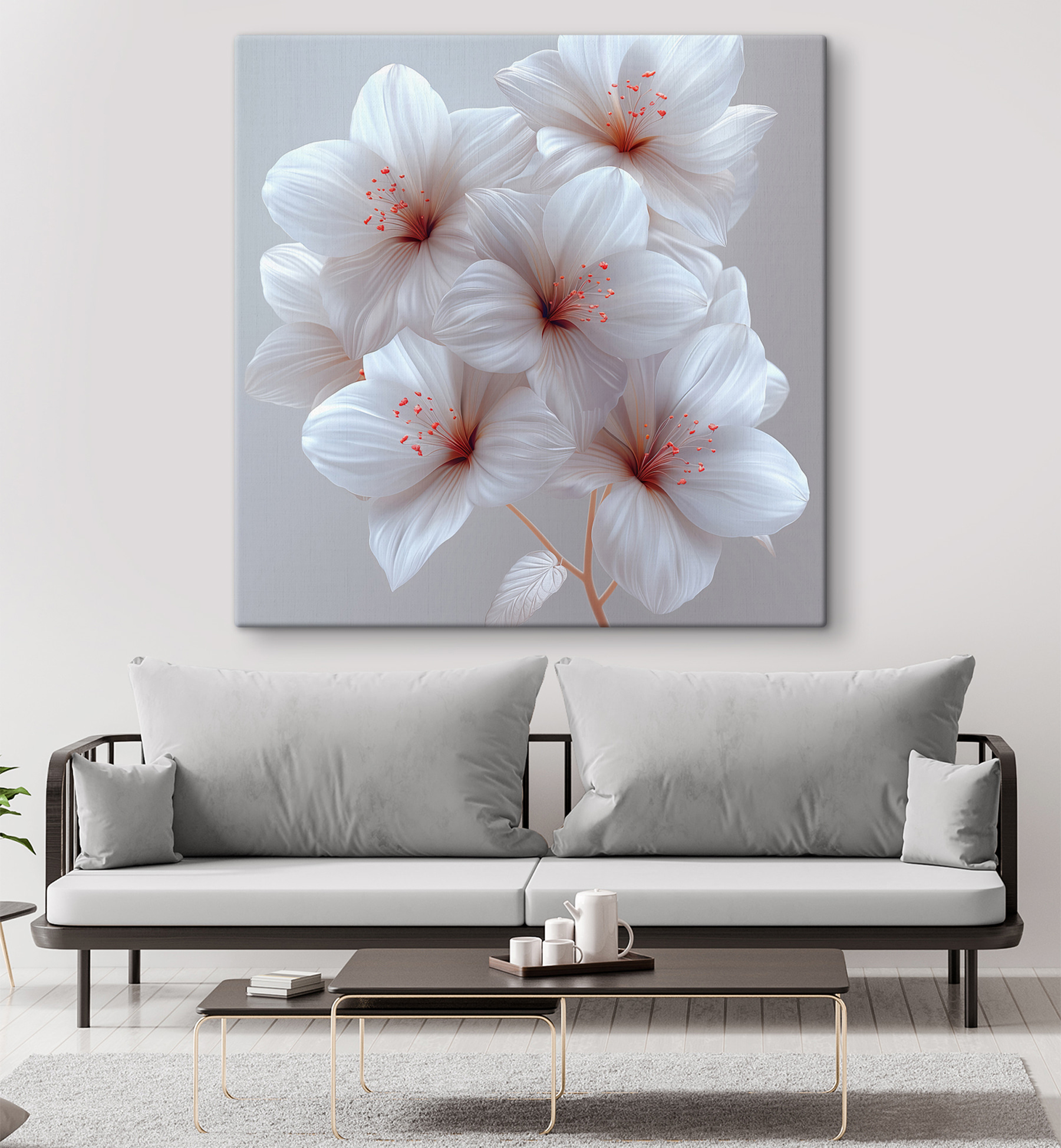 Nuanțele blânde ale petalelor, acele mici stropi de coral de pe stamine – sunt atât de liniștitoare, aproape ca o îmbrățișare vizuală. Perfectă pentru orice spațiu care are nevoie de o notă de calm și frumusețe. Gândiți-vă să o așezați în colțul de lectură sau în locul din dormitor unde vă savurați cafeaua de dimineață. Este genul de piesă care vă invită să visați cu ochii deschiși la grădini însorite și brize blânde. Acest print este mai mult decât un simplu decor – este o amintire a eleganței și simplității naturii, chiar în casa ta.