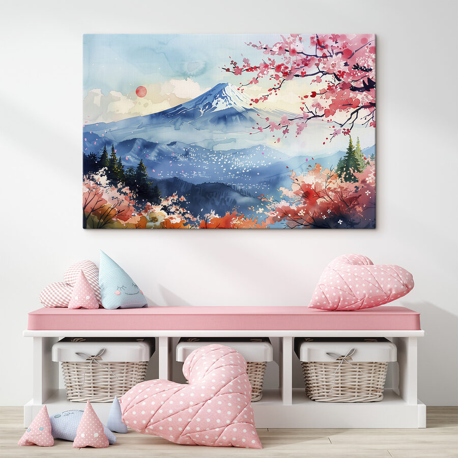 Imaginați-vă că vă treziți în fiecare zi la o priveliște ca aceasta! “Tablouri s39775” aduce o felie de natură senină chiar în spațiul dvs. de locuit. Este ca o mini-vacanță – dar fără bagaje și jet lag. Aerul proaspăt de munte, răsăritul orbitor și acele flori roz delicate… Aproape că poți simți petalele moi atingându-ți pielea și poți auzi șoapta vântului printre copaci. Este perfect pentru oricine are nevoie de o evadare rapidă din agitație și agitație.