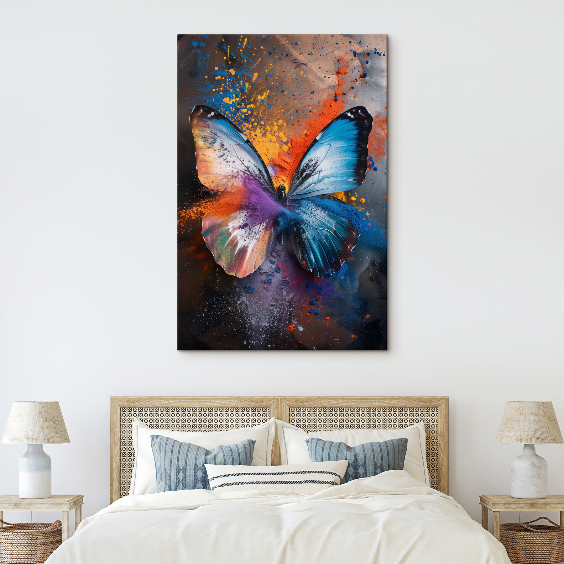 Energia și mișcarea captate în această piesă sunt pur și simplu uimitoare. Este greu de decis care cameră merită mai mult această frumusețe, sufrageria sau dormitorul – de ce nu ambele? Detaliile fine din aripi și haosul blând al stropilor de vopsea o fac extrem de fascinantă. Fiecare privire dezvăluie ceva nou. Fie că sunteți un fan al artei abstracte, iubiți animalele sau pur și simplu doriți ceva popular și la modă, aceasta bifează toate căsuțele.
