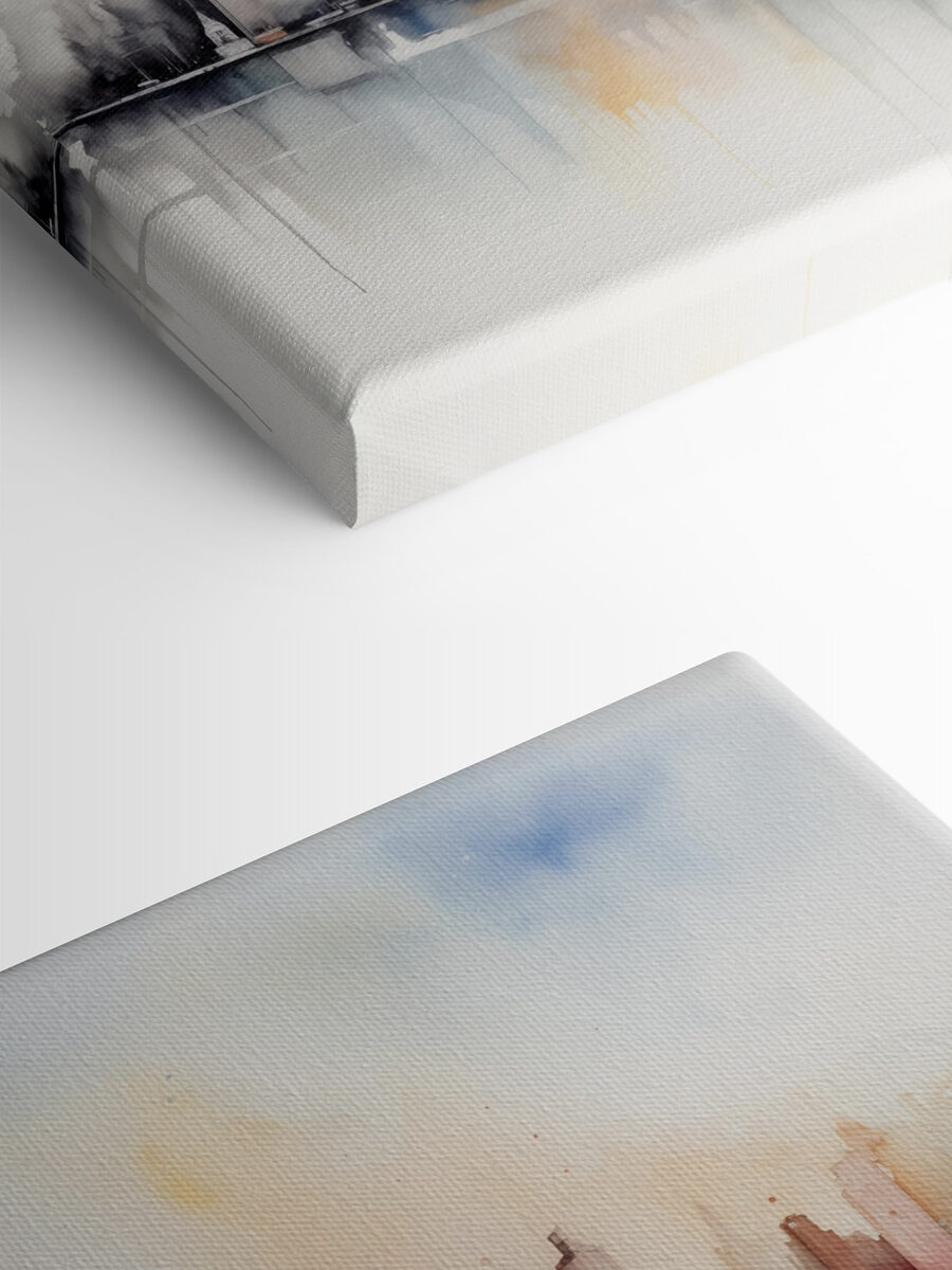 Imaginați-vă că vă treziți și vedeți acest uimitor cityscape canvas print în acuarelă salutându-vă în fiecare dimineață. Este ca și cum ți-ai bea cafeaua lângă un orizont cețos – aproape că te aștepți să simți răcoarea dimineții și să auzi zumzetul îndepărtat al orașului. Acest print îmbină liniștea acuarelei cu zumzetul vieții urbane, oferind spațiului dvs. acel vibe cool și modern.