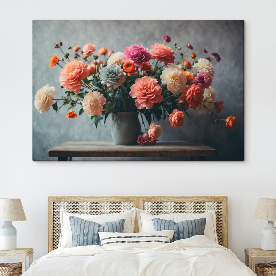 Uită-te la această imprimare uimitoare pe pânză! Este ca și cum ai avea o petrecere în grădină în sufrageria ta. Denumită “Tablouri s39859”, această piesă aparține categoriilor “Flowers Canvas Art, Nature Canvas Art, Popular Canvas Art”. Imaginează-ți explozia de culoare și viață pe care o va aduce spațiului tău – adică, uită-te la aceste flori de vis! Pastelurile moi cu senzația de masă rustică… este ca și cum florile îți șoptesc calm și bucurie în ziua ta.