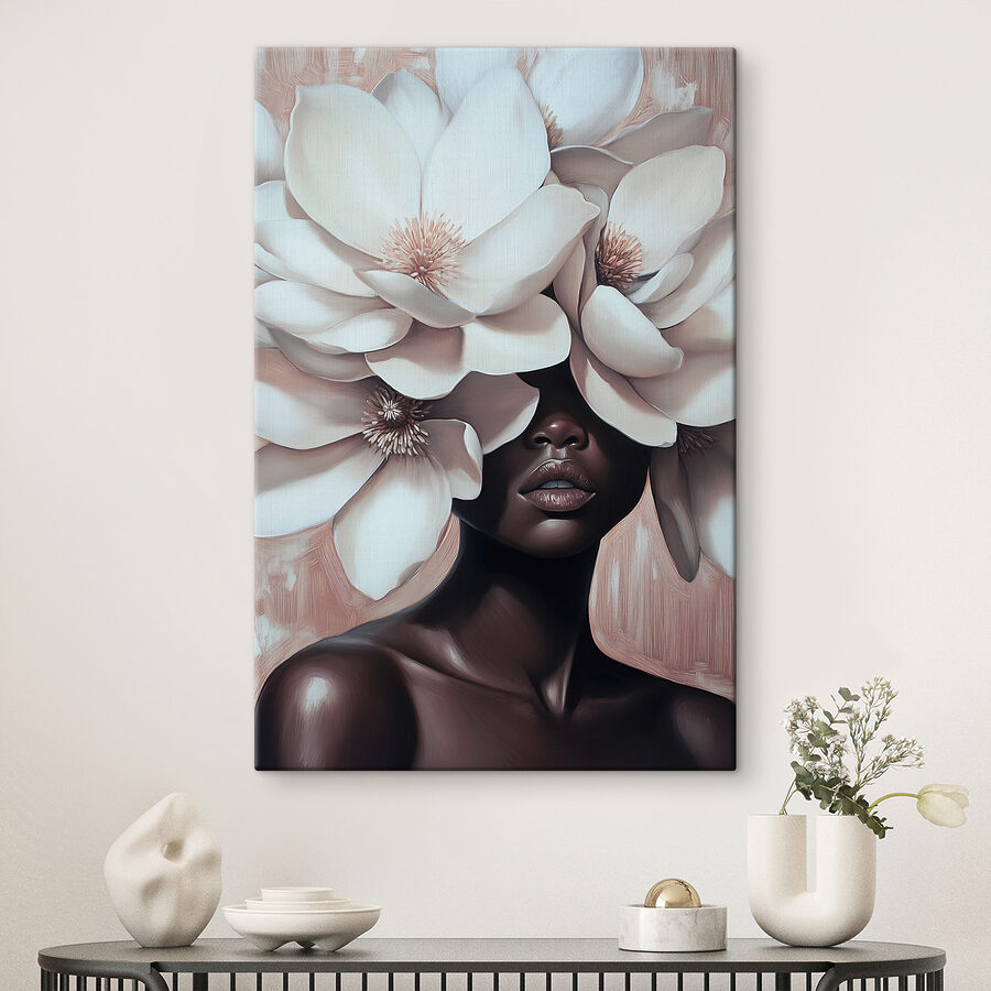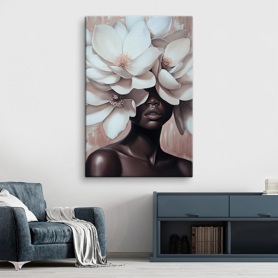 Imaginați-vă că intrați într-o cameră și găsiți această imprimare uimitoare pe pânză, o femeie senină împodobită cu flori delicate în păr. Este ca o adiere blândă de aer proaspăt, care înviorează instantaneu atmosfera. Culorile blânde te atrag, invitându-te să te oprești și să te cufunzi în frumusețe. Fie că este agățată într-un colț de lectură confortabil sau deasupra unei canapele elegante, această piesă stârnește conversații și zâmbete. Captează un moment de liniște, perfect pentru cei care apreciază arta care se simte vie. O atingere a naturii și un pic de uimire – cine nu și-ar dori acest tip de magie în spațiul său?