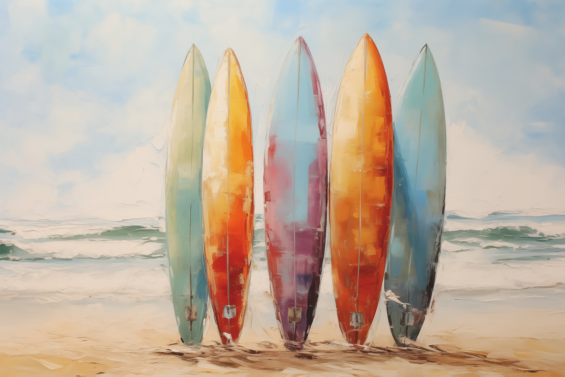 Transformați orice cameră într-un paradis al plajei cu această pânză vibrantă cu plăci de surf aliniate pe țărm. Este ca o îmbrățișare caldă într-o zi de vară, completată de valurile blânde care șoptesc în fundal. Imaginați-vă sorbind o băutură răcoroasă în timp ce vă amintiți de vacanțele însorite sau chiar planificați următoarea excursie de surf – țineți pumnii pentru niște valuri grozave, nu-i așa? Culorile jucăușe ies în evidență, aducând un vibe vesel spațiului tău. Agățați-o în camera de zi sau chiar într-un colț confortabil și lăsați-o să stârnească conversații și visări cu ochii deschiși. Cui nu-i place o mică evadare?