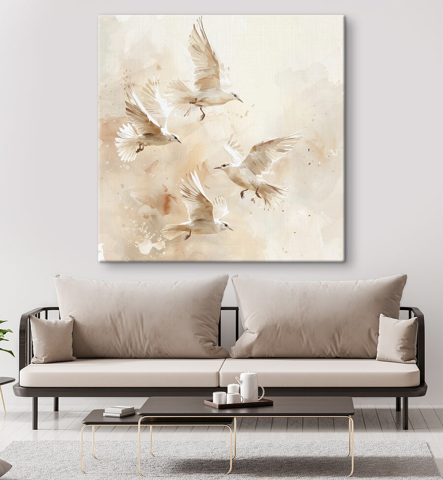 Faceți cunoștință cu imprimarea pe pânză pe care ați vrea să o aduceți acasă-“Tablouri s39973.” Are o atmosferă uluitoare de acuarelă care te face practic să auzi foșnetul penelor. Aceste păsări în nuanțe moi, de vis, sunt ca poezia în mișcare! Fie că iubiți natura, fie că aveți nevoie de un pic de zen în spațiul dvs. de locuit, această piesă este perfectă. Perfectă pentru orice cameră, este ca pacea personificată pe peretele tău.