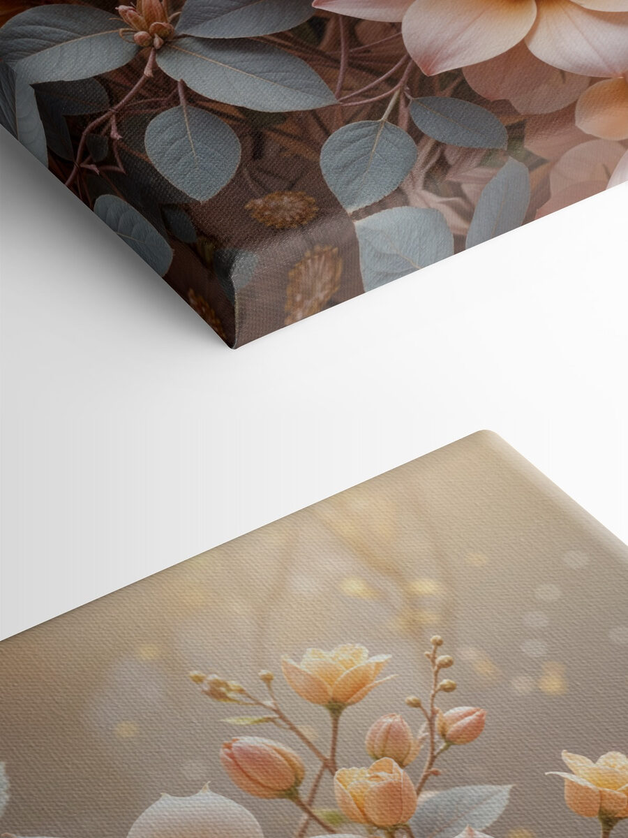 Transformați orice spațiu cu acest minunat print pe pânză cu un grup de flori și frunze delicate. Nuanțele blânde de piersică și verdele moale creează o atmosferă veselă și liniștitoare – perfectă pentru un colț confortabil sau un hol luminos. Imaginați-vă că treceți pe lângă ea, aruncați o privire asupra acestei frumuseți și vă gândiți la o grădină în plină înflorire, chiar și într-o zi ploioasă. Această piesă nu adaugă doar culoare; aduce căldură și o notă de natură în interior. Agățați-o și observați cum îmbunătățește instantaneu starea de spirit a camerei. Este ca o gură de aer proaspăt, chiar pe peretele tău!