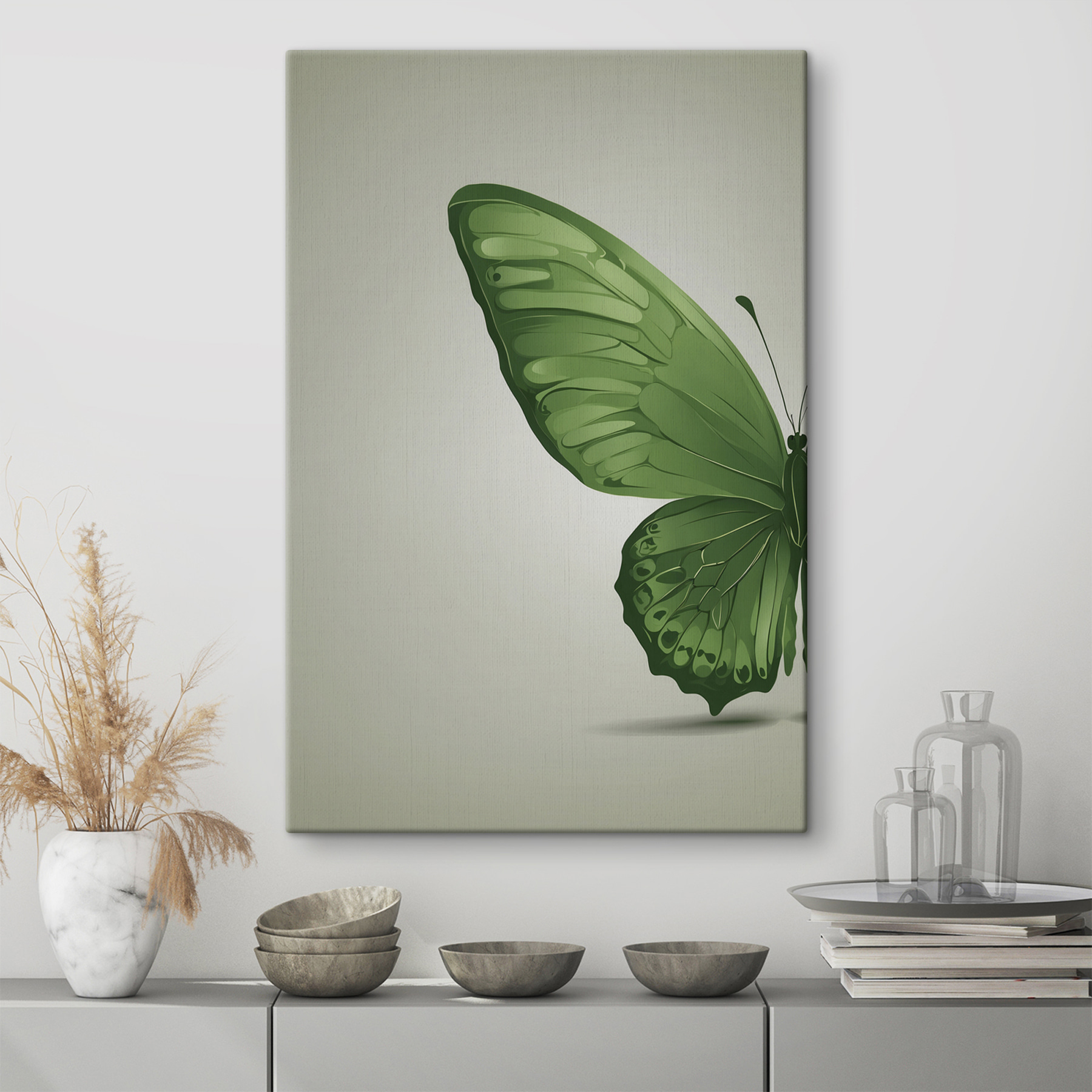 Transformați orice încăpere cu această imprimare uimitoare pe pânză cu un fluture verde, cu aripile întinse ca și cum ar fi pe cale să își ia zborul. Este ceva în legătură cu fluturii, nu-i așa? Ei ne reamintesc să îmbrățișăm schimbarea și frumusețea din lucrurile obișnuite. Imaginați-vă această piesă deasupra unui colț de lectură confortabil sau pe un hol unde prietenii nu pot să nu se oprească și să o admire. Verdele vibrant iese în evidență pe fundalurile surde, adăugând o notă răcoritoare spațiului dvs. Perfectă pentru iubitorii de natură sau pentru toți cei pasionați de decoruri capricioase, această operă de artă are acel factor “wow” care îi face pe toți să se simtă puțin mai ușori doar fiind în preajma ei.