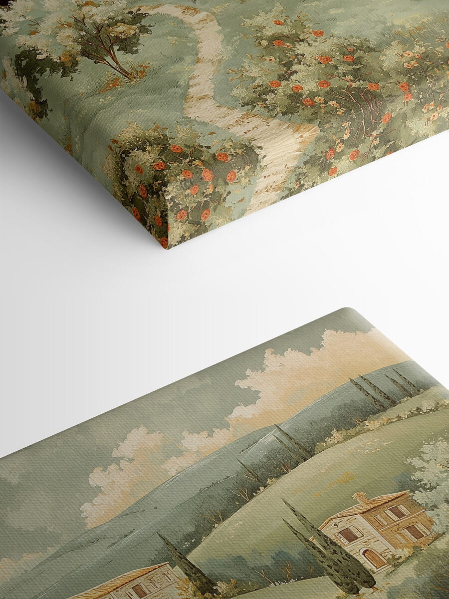 Imaginați-vă că veniți acasă după o zi lungă și vedeți acest peisaj de vis pe perete! Tablourile noastre “Tablouri S40078” vă duc direct pe dealurile liniștite ale Toscanei, fără a fi nevoie să vă părăsiți sufrageria. Chiar între categoriile “Arhitectură artă pe pânză” și “Natură artă pe pânză”, această imprimare captează farmecul vilelor clasice cuibărită printre verdeață luxuriantă și flori vibrante. Culorile calde și detaliile fine vă atrag, făcându-vă să vă simțiți ca și cum ați putea face o plimbare liniștită pe acea cărare sinuoasă… să respirați aerul parfumat… poate să auziți ciripitul unei păsări sau două. Perfect pentru oricine dorește o notă de frumusețe atemporală și un pic de evadare în decorul casei sale!