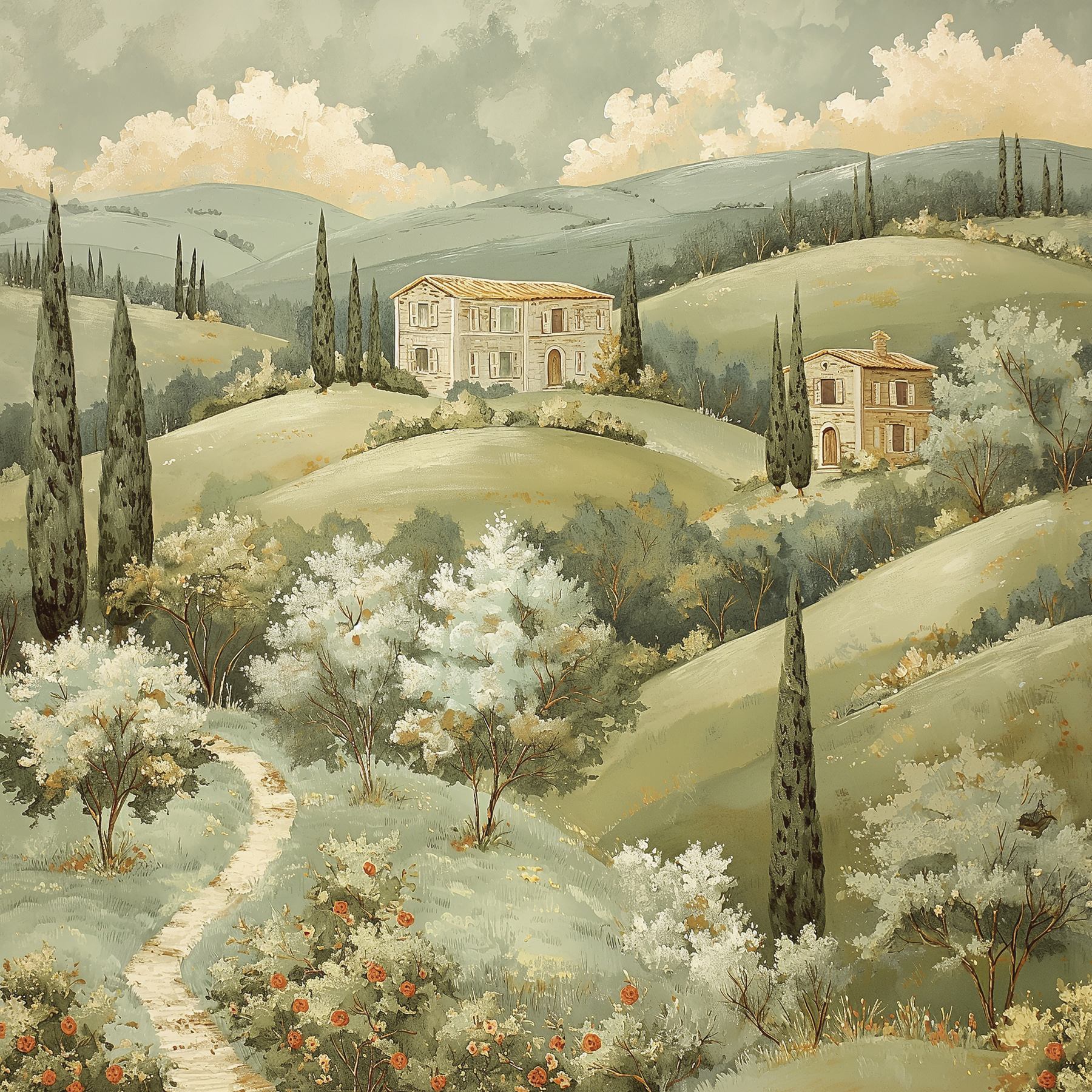 Imaginați-vă că veniți acasă după o zi lungă și vedeți acest peisaj de vis pe perete! Tablourile noastre “Tablouri S40078” vă duc direct pe dealurile liniștite ale Toscanei, fără a fi nevoie să vă părăsiți sufrageria. Chiar între categoriile “Arhitectură artă pe pânză” și “Natură artă pe pânză”, această imprimare captează farmecul vilelor clasice cuibărită printre verdeață luxuriantă și flori vibrante. Culorile calde și detaliile fine vă atrag, făcându-vă să vă simțiți ca și cum ați putea face o plimbare liniștită pe acea cărare sinuoasă… să respirați aerul parfumat… poate să auziți ciripitul unei păsări sau două. Perfect pentru oricine dorește o notă de frumusețe atemporală și un pic de evadare în decorul casei sale!