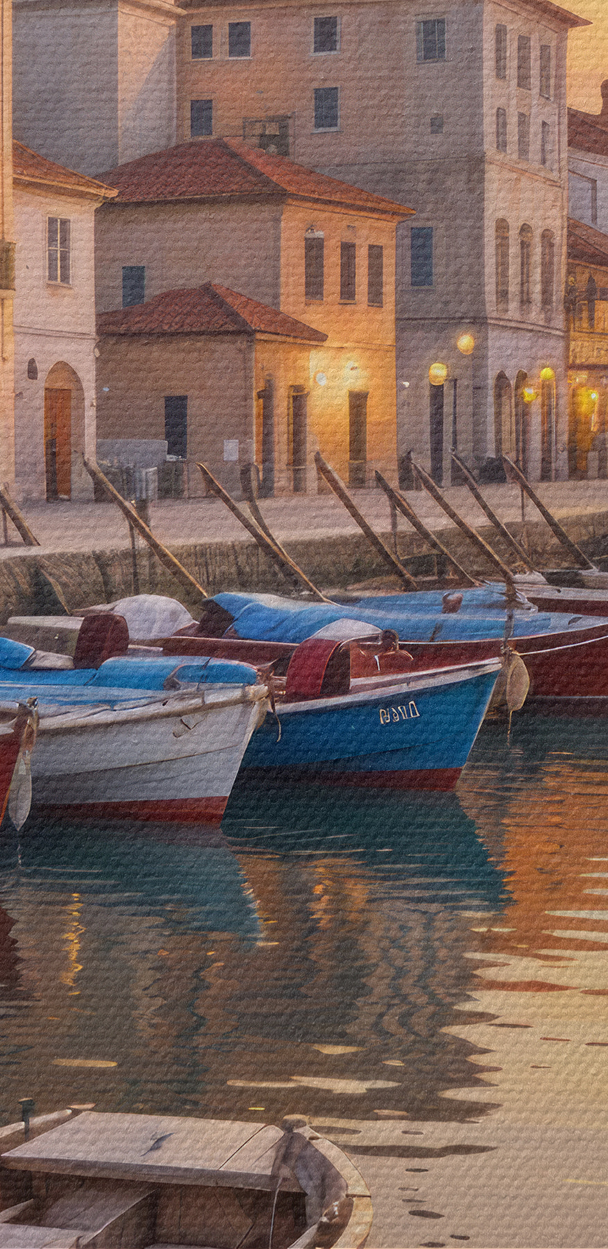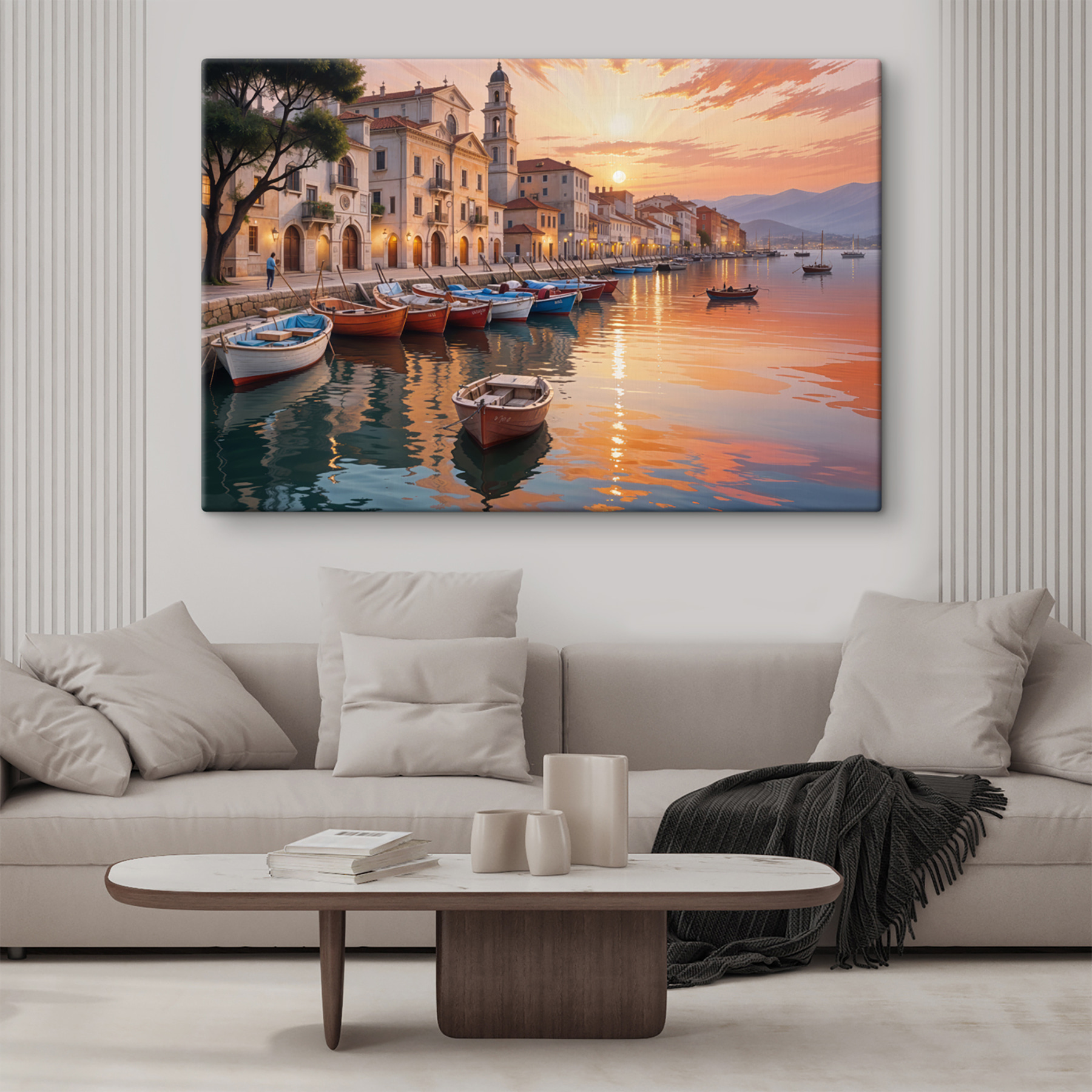 Imaginați-vă acest lucru: veniți acasă după o zi lungă, vă dați jos pantofii și sunteți transportat instantaneu pe malul unui canal liniștit la apus – doar uitându-vă la perete! Acest print pe pânză, “Tablouri s40150”, ar putea face exact asta. Este ca o fereastră către un oraș liniștit, din lumea veche, unde bărcile colorate se mișcă ușor pe apele calme, iar clădirile strălucesc cald în lumina serii. Aproape că poți simți briza răcoroasă și mirosul apei proaspete. Perfect pentru a adăuga o notă de liniște spațiului tău. Fie că este vorba de camera de zi, dormitor sau birou, această piesă se integrează perfect, făcând din fiecare privire o mini-vacanță. Agățați-o și lăsați-vă imaginația să zburde – cine nu și-ar dori asta?