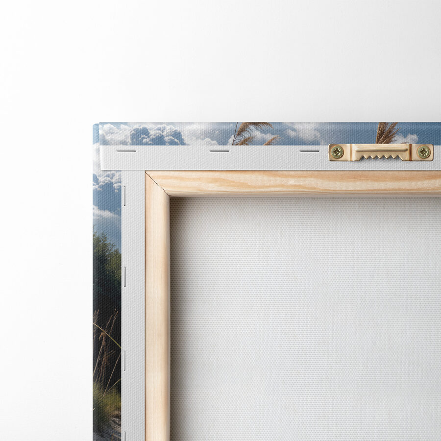 Imaginați-vă că pășiți într-un sanctuar senin cu această imprimare uimitoare pe pânză a unei plaje sărutate de valuri blânde și iarbă înaltă legănată de briză. Este ca o mini-vacanță pentru pereții tăi! Albastrul liniștit al oceanului se îmbină frumos cu norii moi și rarefiați, creând o atmosferă de vis. Perfectă pentru momentele în care nivelul de stres crește – doar privește-o și lasă-ți mintea să se îndepărteze. Fie că se află în camera de zi sau într-un colț de lectură confortabil, această piesă invită la un val de calm. Este o capodoperă a naturii, gata să aducă o felie de paradis chiar în casa ta!