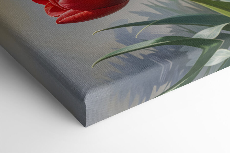 Înveseliți orice perete cu această minunată imprimare pe pânză a lalelelor într-o vază, plină de culoare ca o grădină de primăvară. Aceste flori vesele invită căldura și o notă de natură direct în spațiul dvs. de locuit. Imaginează-ți că treci pe lângă ele și te simți puțin înviorat de aceste roșii vibrante, galbene și roz blând – perfecte pentru diminețile confortabile cu cafea sau după-amiezele leneșe în care răsfoiești o carte bună. Fie într-o zonă de luat masa, cameră de zi sau chiar într-un spațiu de lucru, această piesă adaugă un strop de energie proaspătă. Cine ar fi crezut că florile pot vorbi atât de frumos? Oferiți pereților o atmosferă care se simte ca acasă.