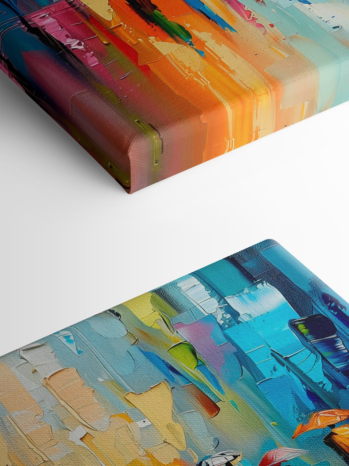Scufundați-vă într-o lume vibrantă cu această imprimare uimitoare pe pânză cu oameni care dansează prin viață sub umbrele colorate. Imaginați-vă sorbind o cafea în timp ce priviți parada veselă de culori – fiecare figură aduce un sentiment de mișcare și bucurie, aproape ca și cum și-ar împărtăși poveștile cu dumneavoastră. Contrastele jucăușe dintre umbrelele luminoase și fundalul moale pot lumina orice cameră. Este perfect pentru a stârni conversații sau doar pentru a face un spațiu să pară mai primitor. Un pic de fantezie, un strop de culoare – cine nu ar vrea să zâmbească la asta? Lăsați această piesă să vă lumineze ziua, indiferent dacă plouă sau strălucește!
